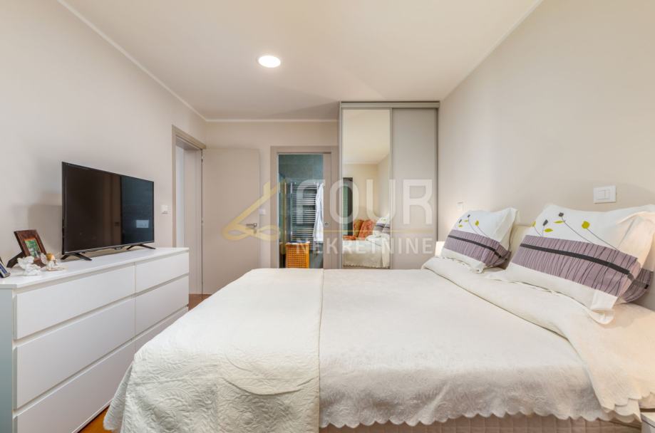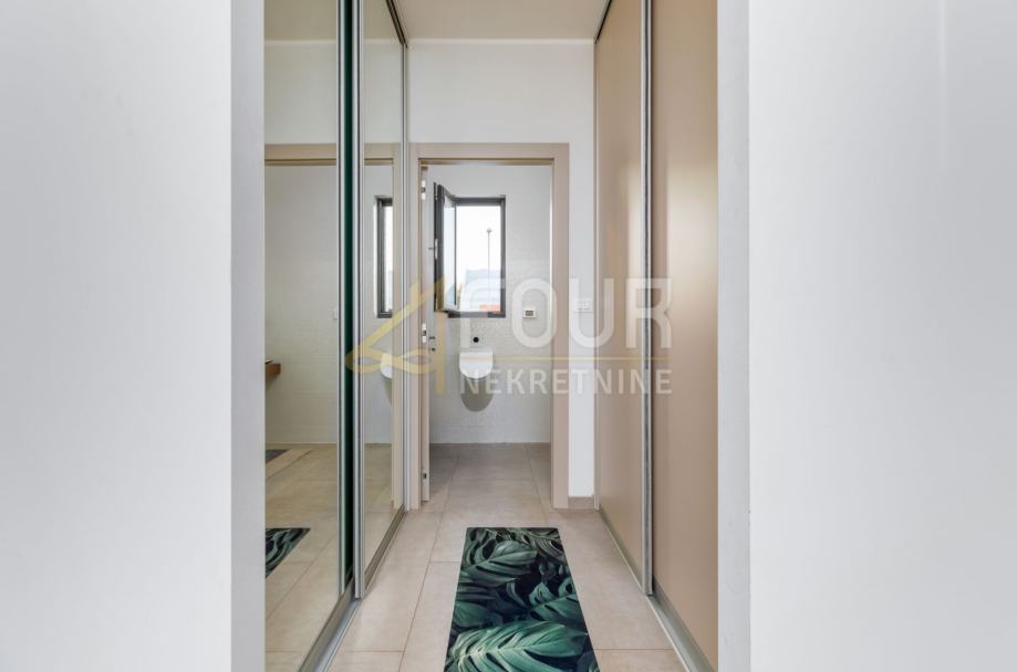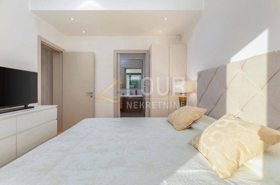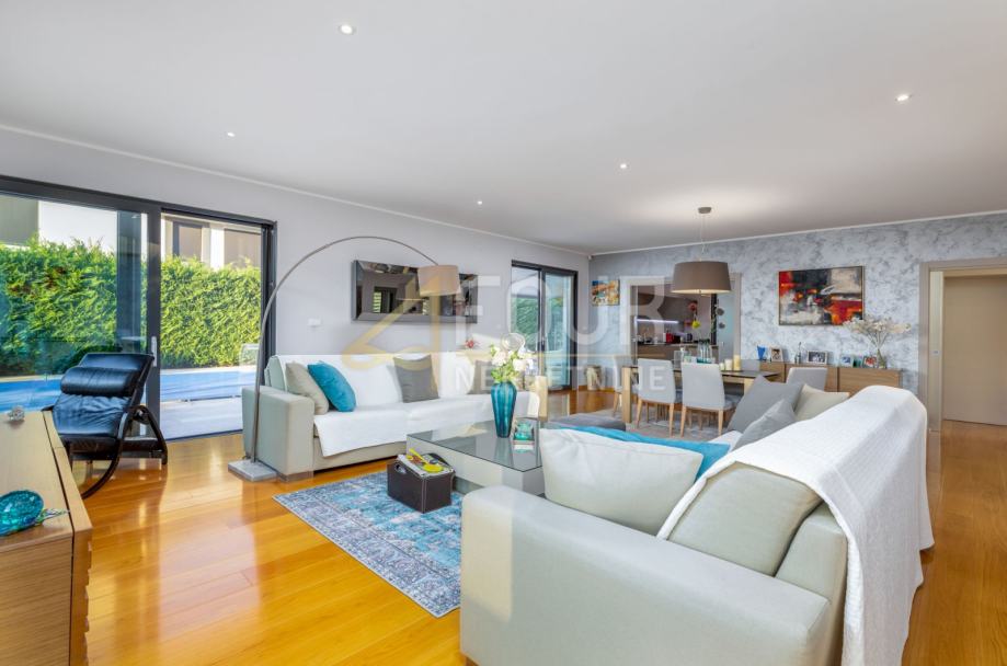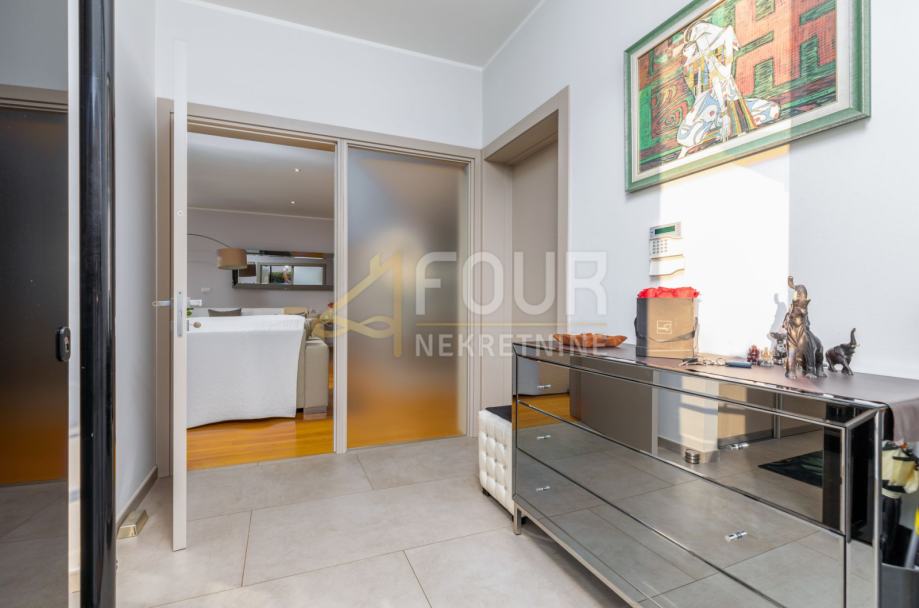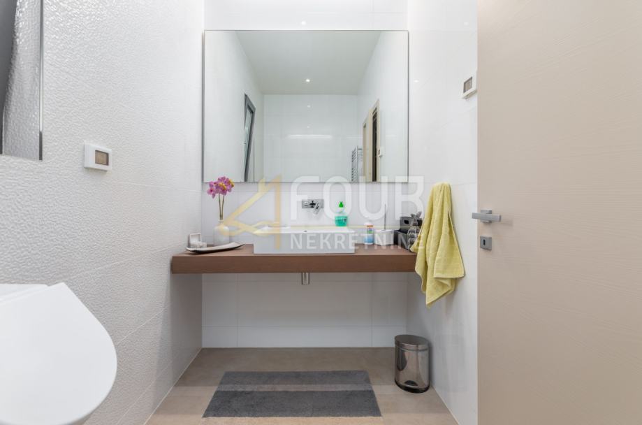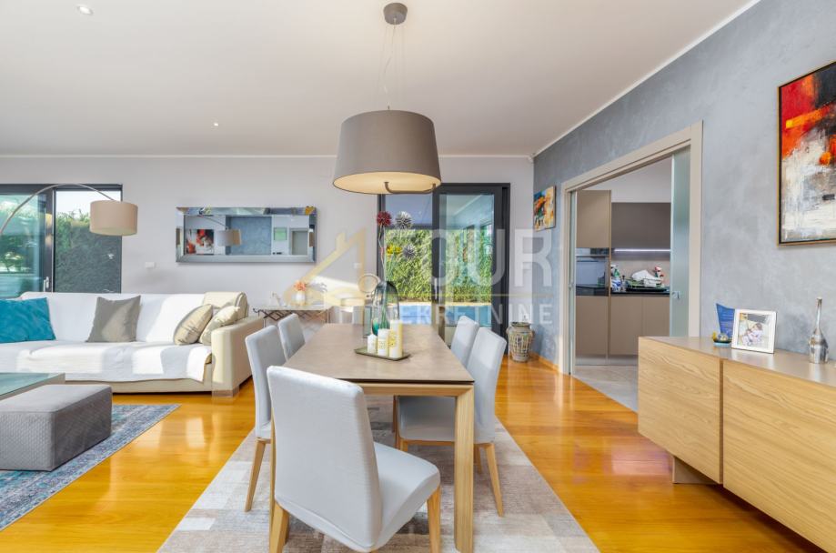 Vila je izvanredne arhitekture s puno staklenih stijena i dnevnog svijetla, te izuzetno funkcionalnog rasporeda. Također je potpuno opremljena vrhunskim materijalima, od drvenih i keramičkih obloga do unutarnjih vrata, podnog grijanja, solarnih panela te lifta.