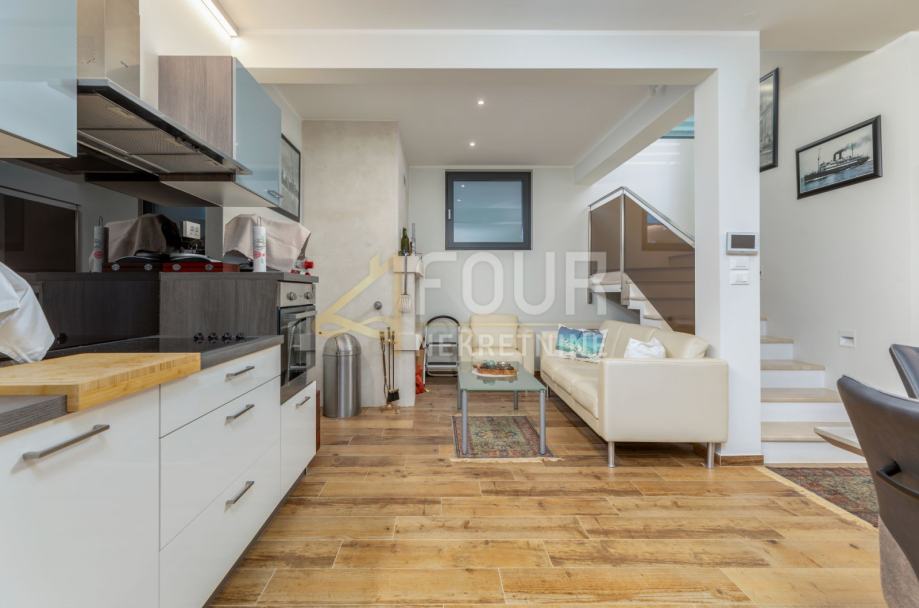 Na katu se nalaze 4 spavaće sobe s vlastitim kupaonicama, te se iz 3 sobe pruža prekrasan pogled na more.