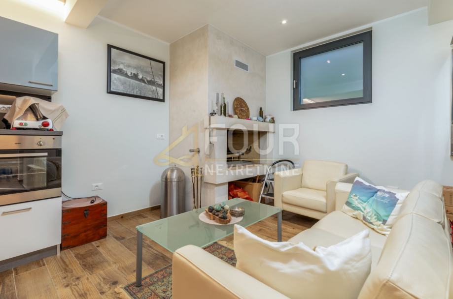 U suterenu se smjestio prostor za druženje te strojarnica, dok se u prizemlju smjestio ulazni prostor, gostinjska kupaonica, kuhinja s blagovaonicom i dnevnim boravkom u open space konceptu s direktnim izlazom na prekrasnu okućnicu.
