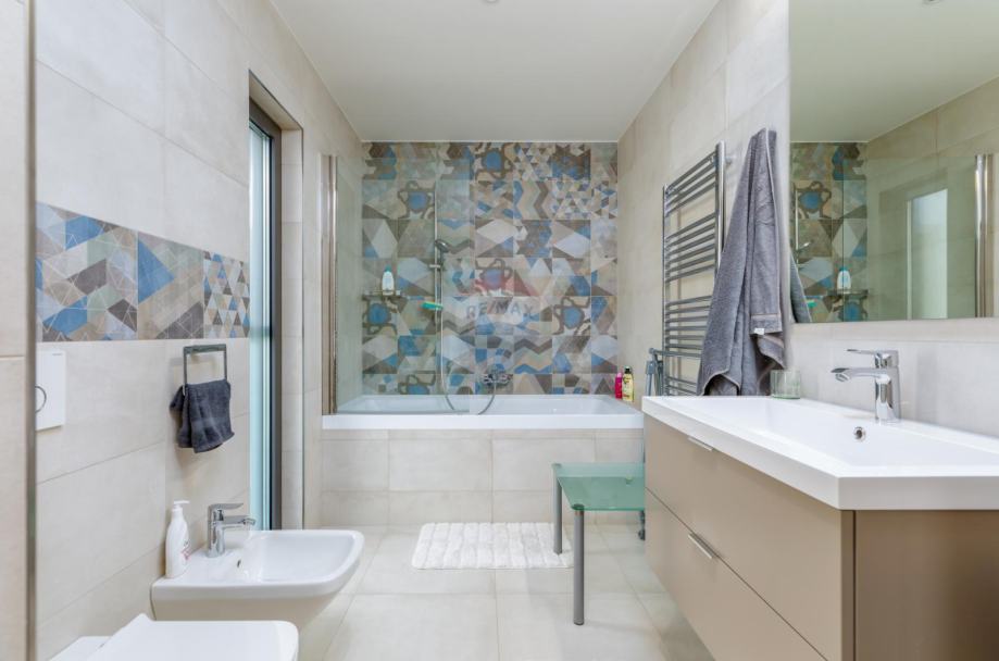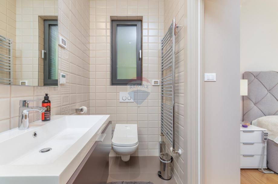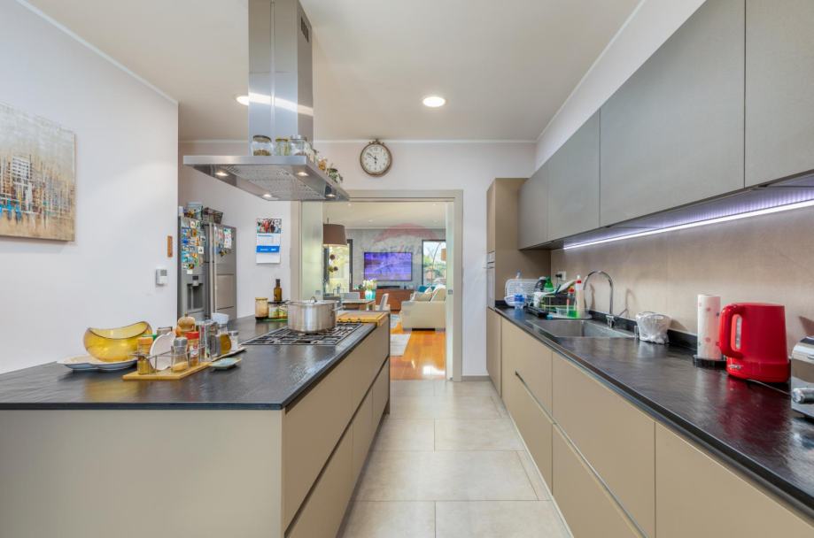 Izuzetno kvalitetna gradnja, izolacija preko 10cm, fasada ima 11 cm izolacije a na dijelovima je postavljen portugalski vulkanski kamen od 2,5 cm koji pomaže održavanju idealne temeprature duž godine. Kvalitetna talijanska keramika, parketi i mramor na podovima. Stolarija je aluminijska troslojna proizvođača Schüco.