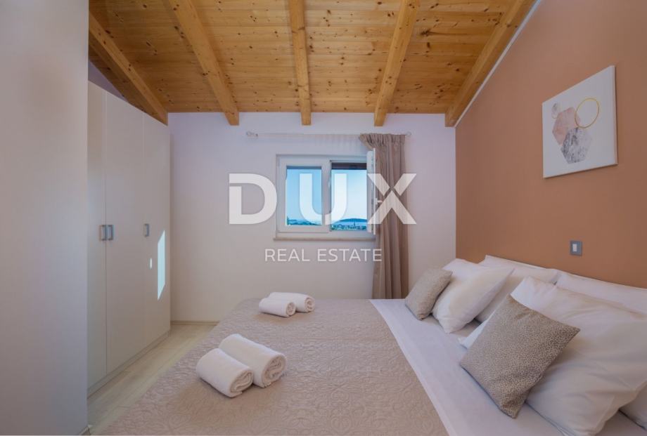 Ova prekrasna vila nalazi se na lijepoj i mirnoj lokaciji s pogledom na more. Radi se o nekretnini visoke vrijednosti vrijedne pažnje koja predstavlja odličnu investiciju za sve one koje se žele baviti turističkim iznajmljivanjem ili kao opciju sigurnog i mirnog obiteljskog doma. Vila je građena materijalima vrhunske kvalitete i namještena posebnom biranim dizajnerskim namještajem i suvremenom opremom.