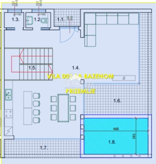 Neto površine ovih deluxe stanova iznositi će 164 m2 . Sastojati če se od tri spavaće sobe,dvije kupaonice,kuhinje,dnevnog boravka,kuhinjom s blagavonom,bazenom,parkirnim mjestima,ostavom,bazen.