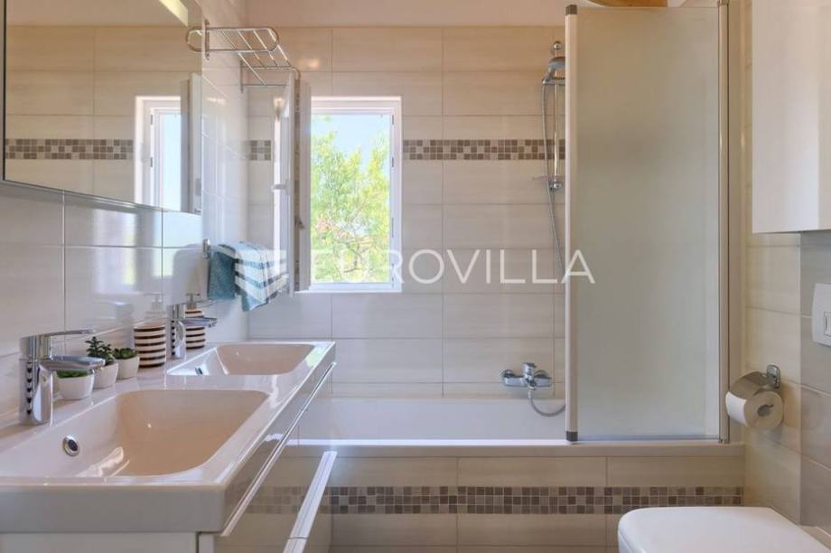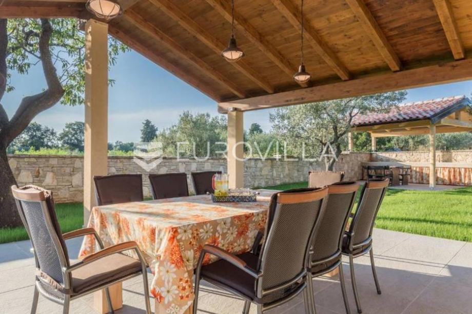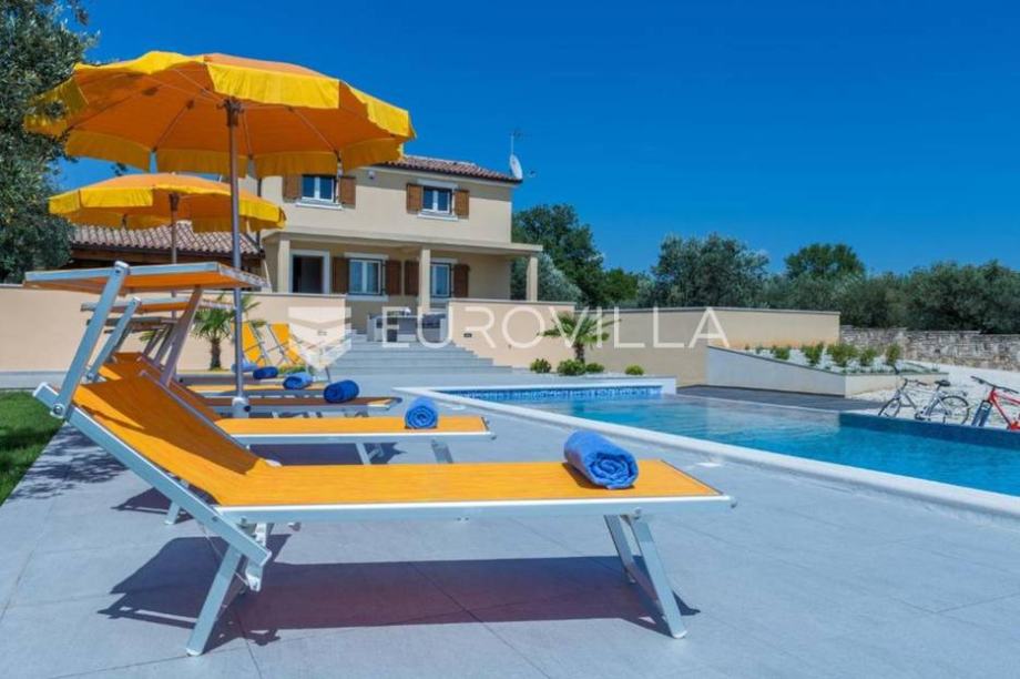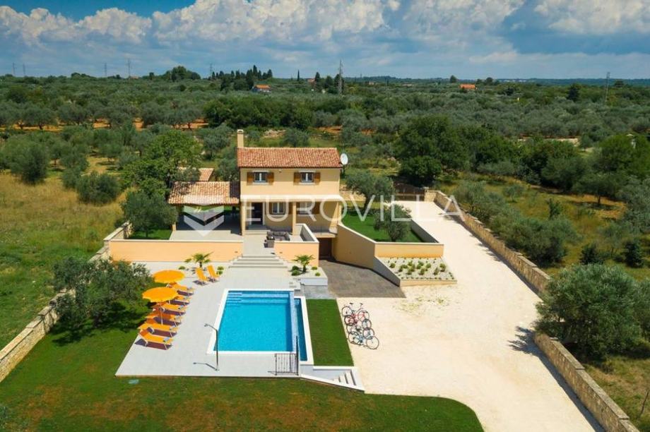 Vila je izgrađena na okućnici od 2237 m2, i to samo 700 m od prve predivne plaže. Pošto je villa smještena na samom rubu naselja te je okružena prirodom i zelenilom ona vam pruža potpunu privatnost i komfor. Villa ima 180 m2 stambene površine raspoređenih na prizemlje i kat te je u suterenu smještena garaža za vašeg limenog ljubimca. Na katu ville smjestile su se tri spavaće sobe u kojima će te uživati dok gledate na Brijunski arhipelag. U prizemlju objekta nalazi se prostrani dnevni boravak sa kuhinjom rađenu po mjeri, luksuznom kupaonicom, blagovaonicom i izlazom na veliku terasu, bazen i uređenu okućnicu nekretnine.