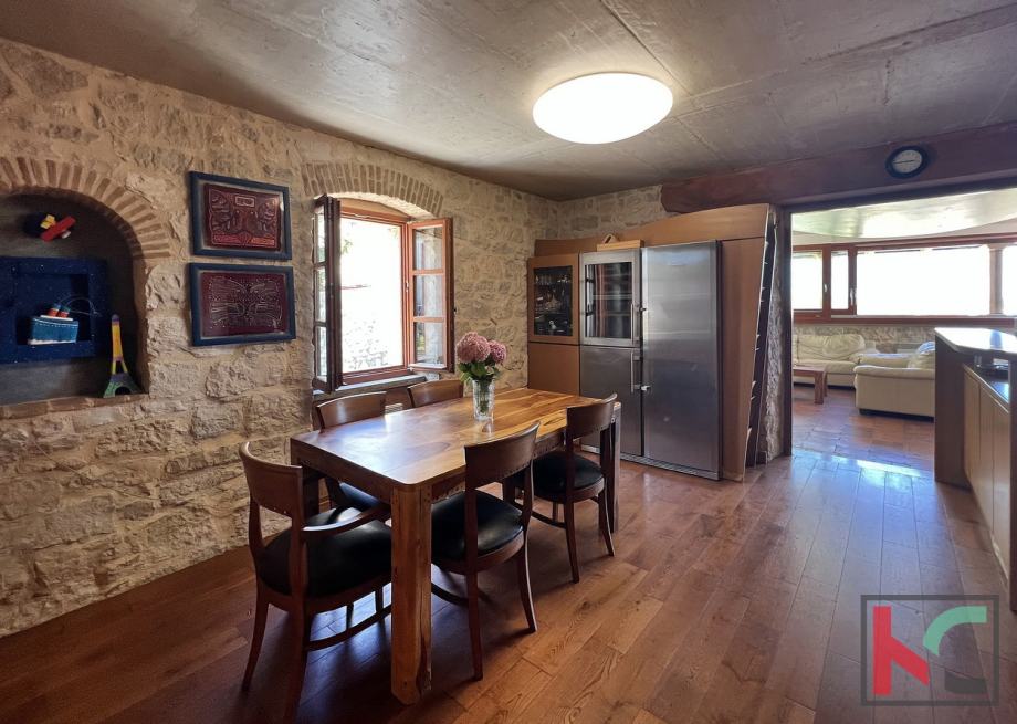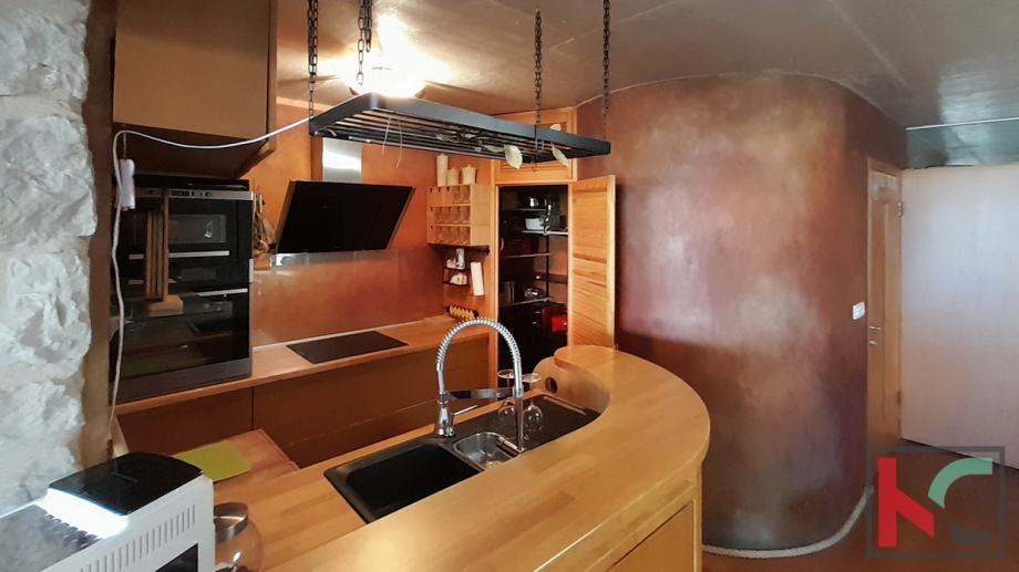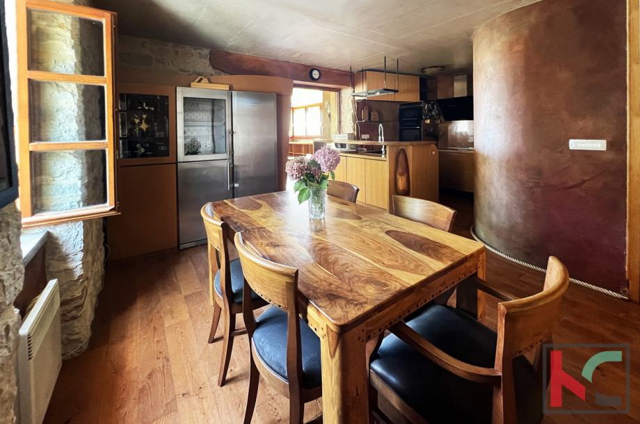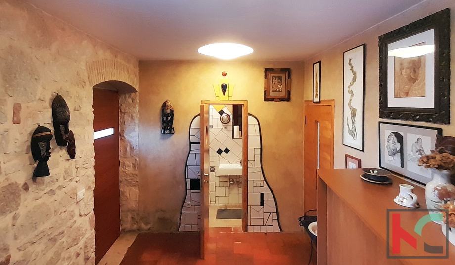 Ova jedinstvena nekretnina odiše arhitektonskim štihom staro/nove Istarske tradicije te je unikatna prilika za nove vlasnike sa umjetničkim senzibilitetom.