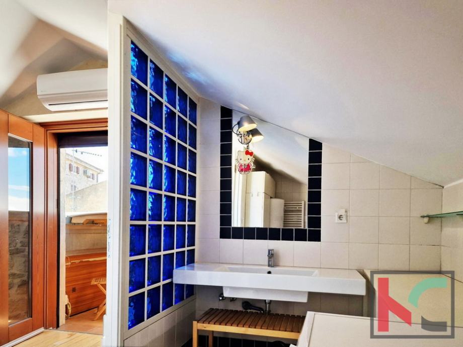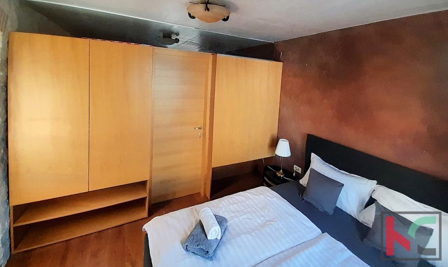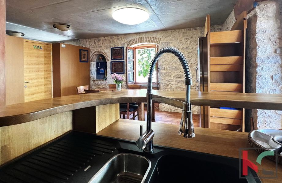 Na prodaju je obnovljena stambeno poslovna dvojnica (nekada dvije kuće) smještena u samom centru Funtane, na iznimno atraktivnoj lokaciji koja omogućuje lagodan život na korak od svih sadržaja – trgovina, restorana, mora i svakodnevnih potreba. Rekonstruirana je po restauratorskim principima i pretvorena u samostojeću kuću pri čemu je zadržan duh tradicijske građanske kuće sa naglaskom na atraktivni izgled interijera i eksterijera. Prednost ove kuće su dva odvojena ulaza u stambeni i poslovni dio. Sam stambeni dio ima ulaz sa malog atraktivnog dvorišta na istočnoj strani raspoređeno u tri etaže (pr+kat+pot) od ukupno 145 m2. Sastoji se od ulaznog dijela, stepeništa, kuhinje sa blagovaonom iu komunikaciji sa dnevnim boravkom, toalet, spavaće sobe te u potkrovlju još dvije spavaće sobe i kupaonica. Posebnu vrijednost stambenog prostora ima prostrani dnevni boravak koji je u potpunosti ostakljen, okupan prirodnim svjetlom tijekom cijelog dana. Iz boravka se pruža prekrasan, otvoren pogled koji prostoru daje osjećaj prozračnosti, topline i ugode – idealno mjesto za opuštanje i druženje.