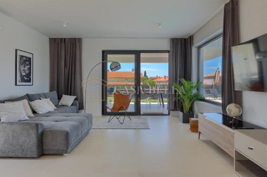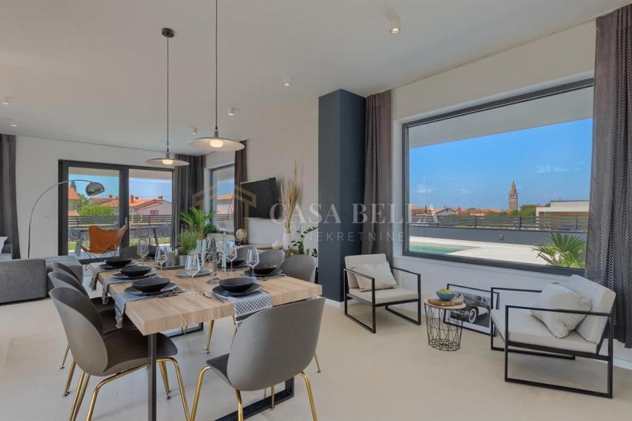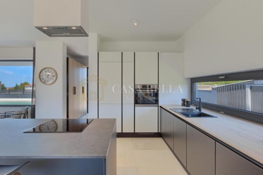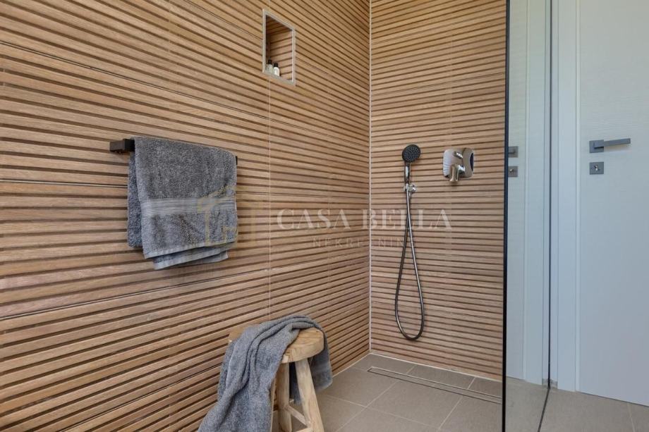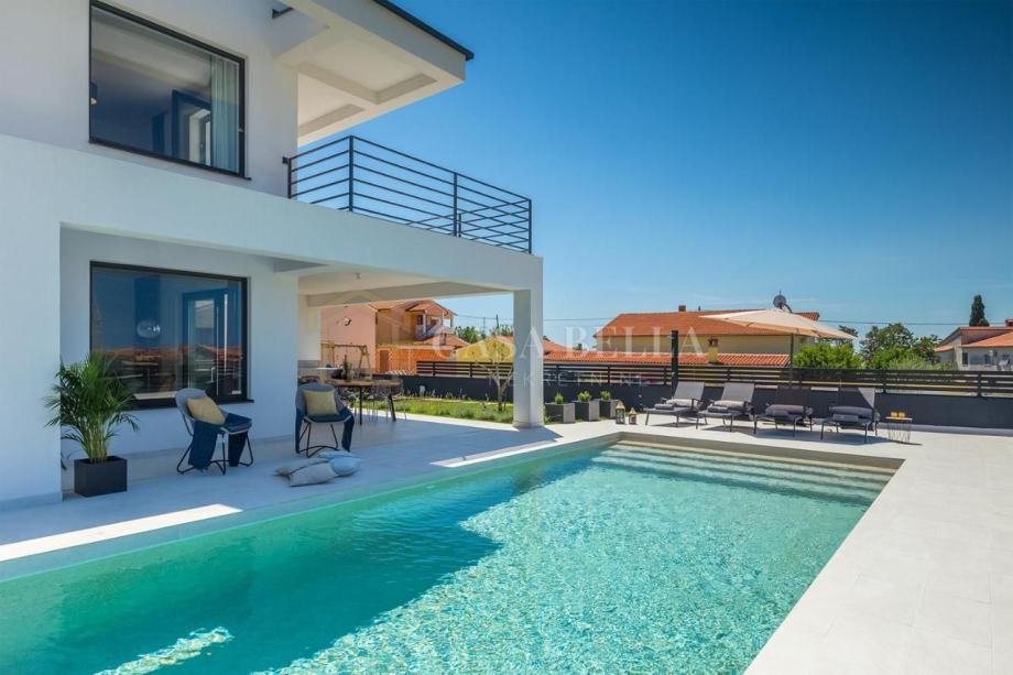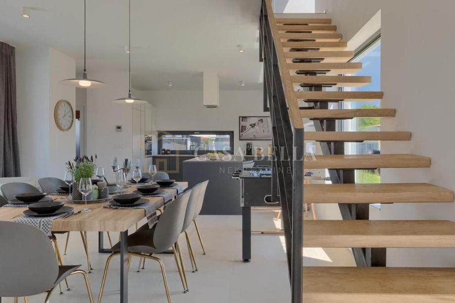 Ova moderna obiteljska vila opremljena je stilski, s velikom dozom lukzusa ali i šarma, pa se tako već samim ulazom u predvorje kuće jasno vidi kako se vodilo računa o svakom pojedinom detalju.