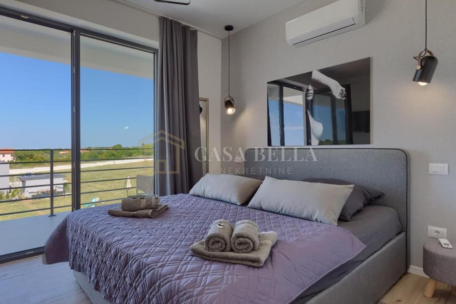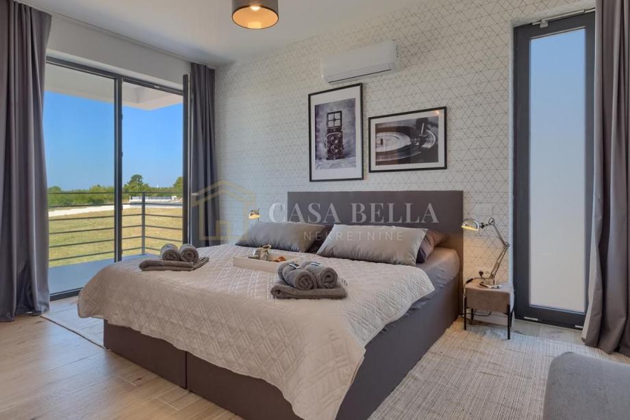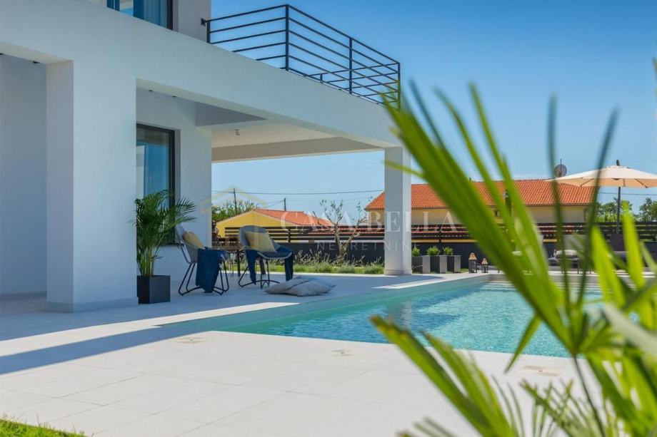 CASA BELLA iz ponude izdvaja prekrasnu dizajnersku vilu s bazenom smještenu na mirnoj lokaciji u mjestu Galižana, nadomak Pule i Brijunskog otočja.