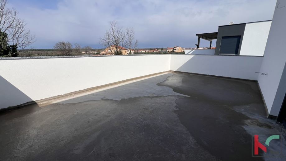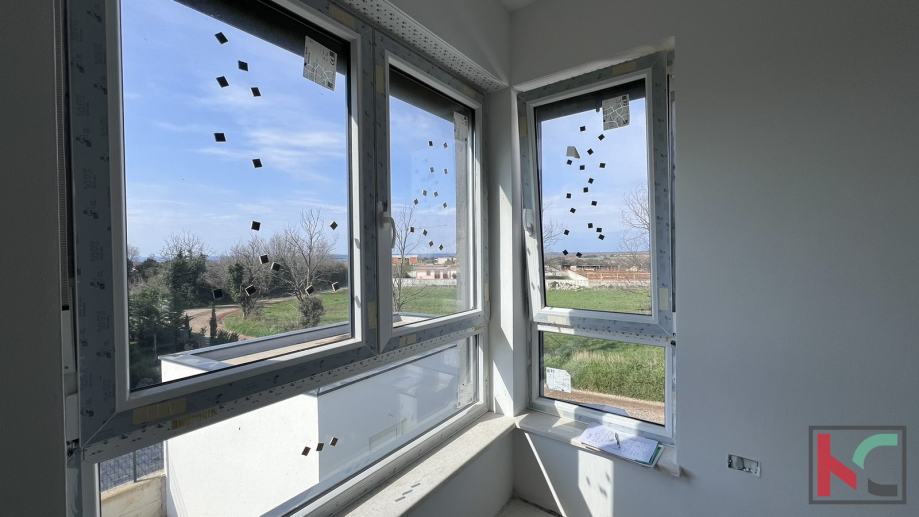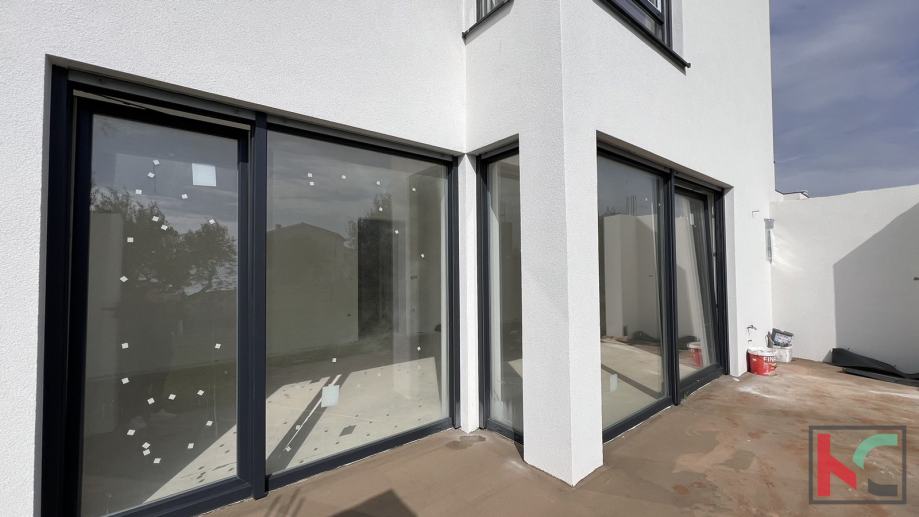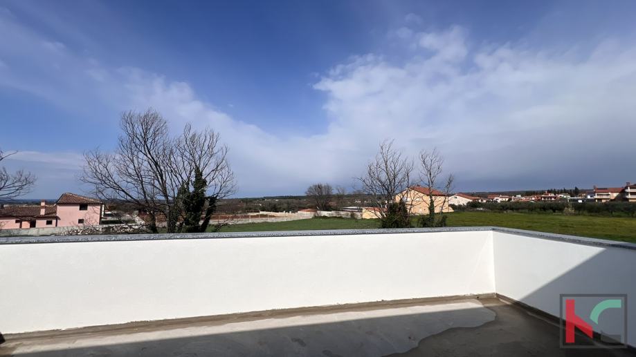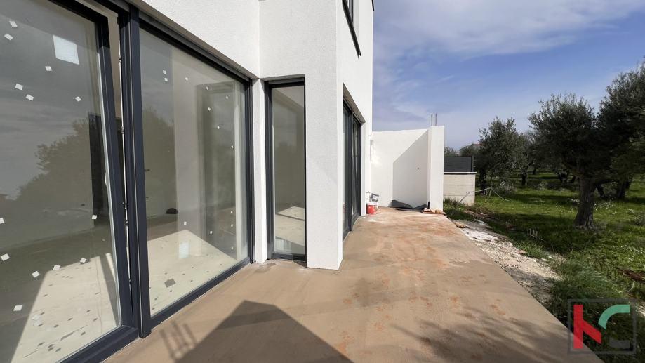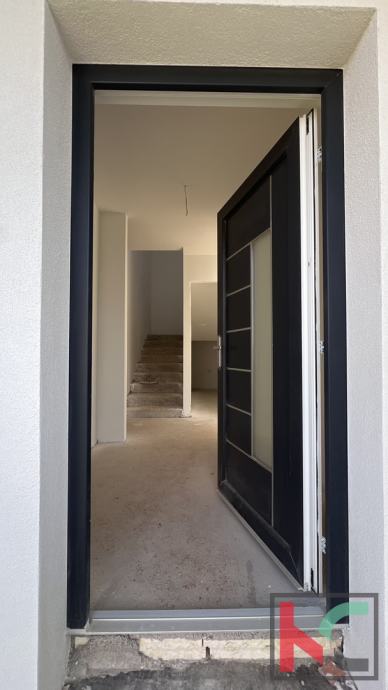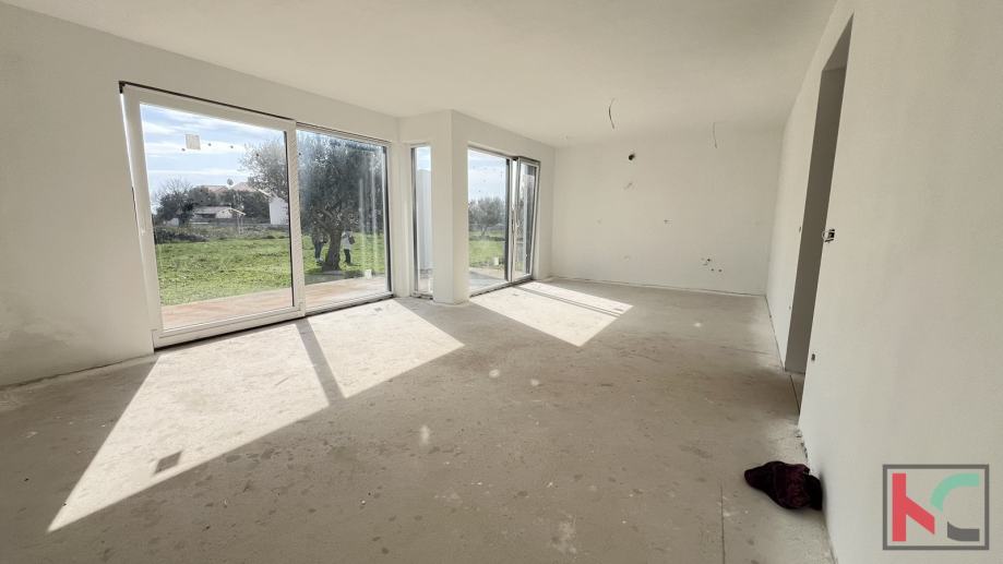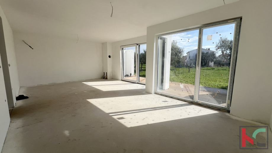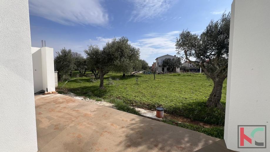 Prodaje se samostojeća katnica ukupne netto površine 138 m2 u visokoj roh-bau fazi, locirana na jako mirnoj lokaciji, okružena maslinicima, s otvorenim pogledom na more i Brijune.