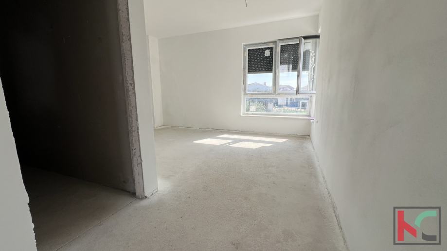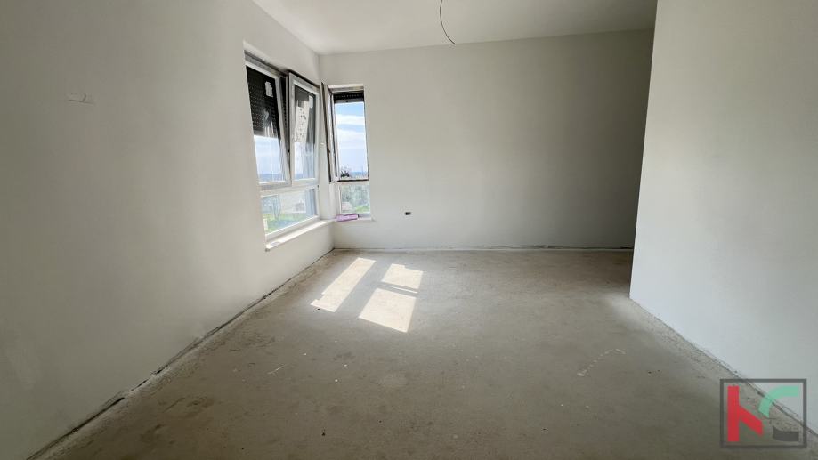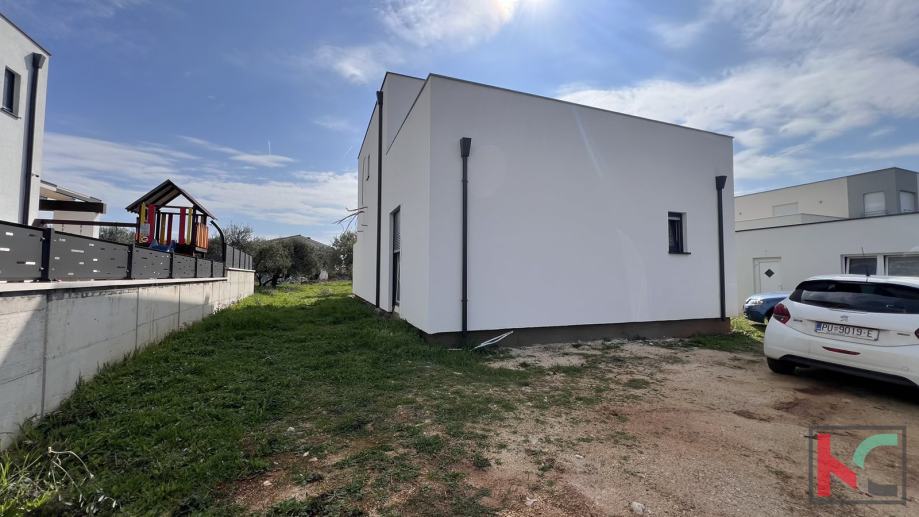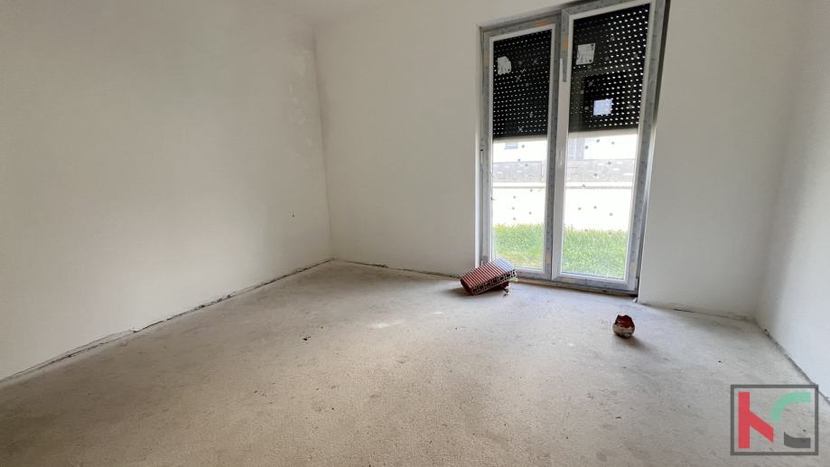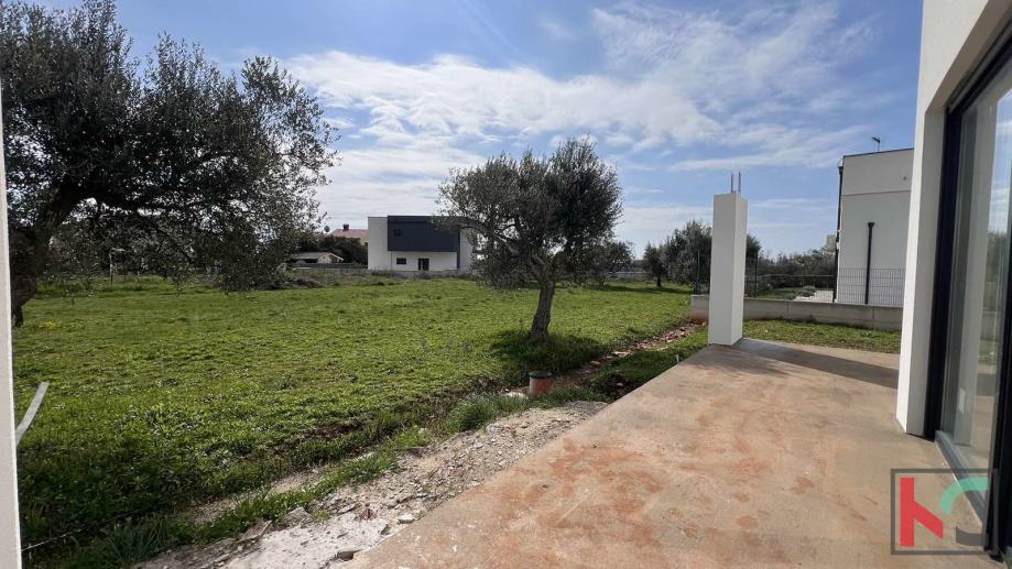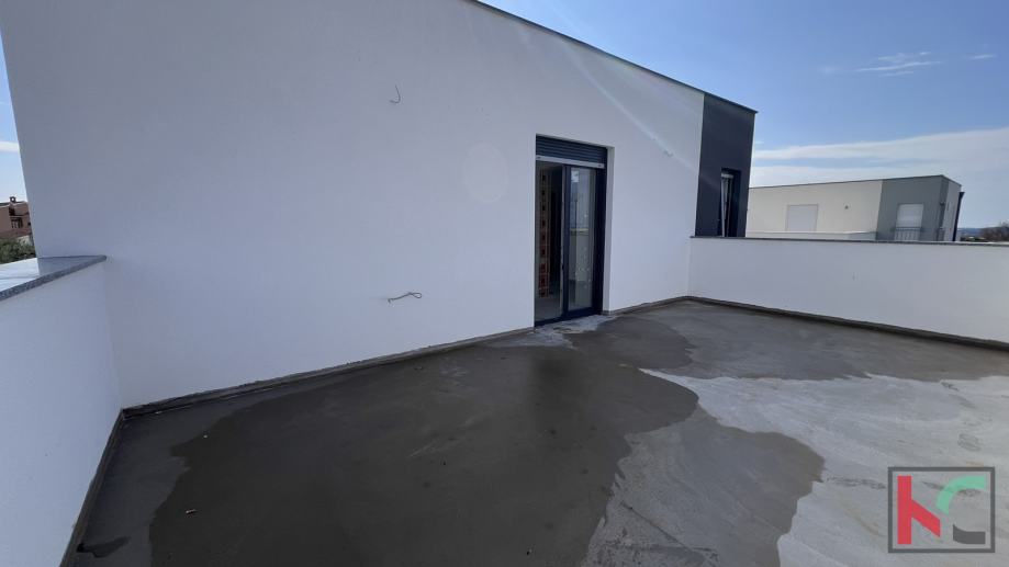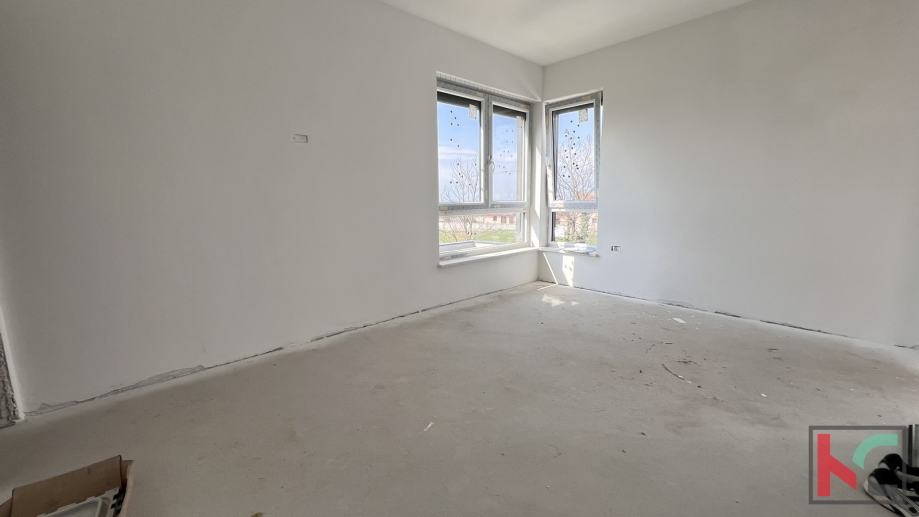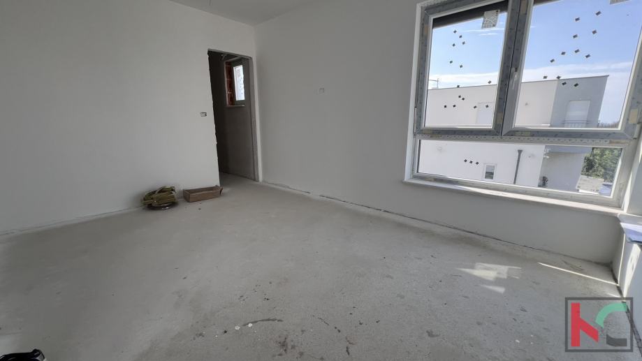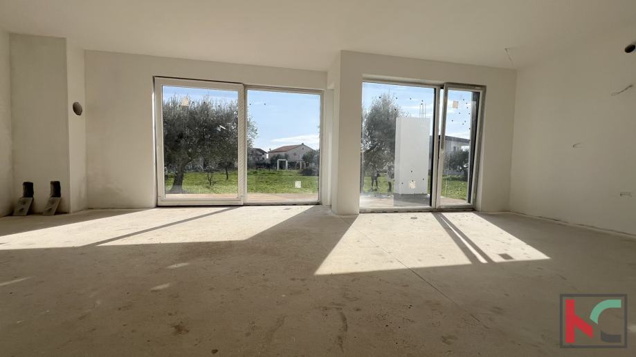 Prodaje se samostojeća katnica ukupne netto površine 138 m2 u visokoj roh-bau fazi, locirana na jako mirnoj lokaciji, okružena maslinicima, s otvorenim pogledom na more i Brijune.