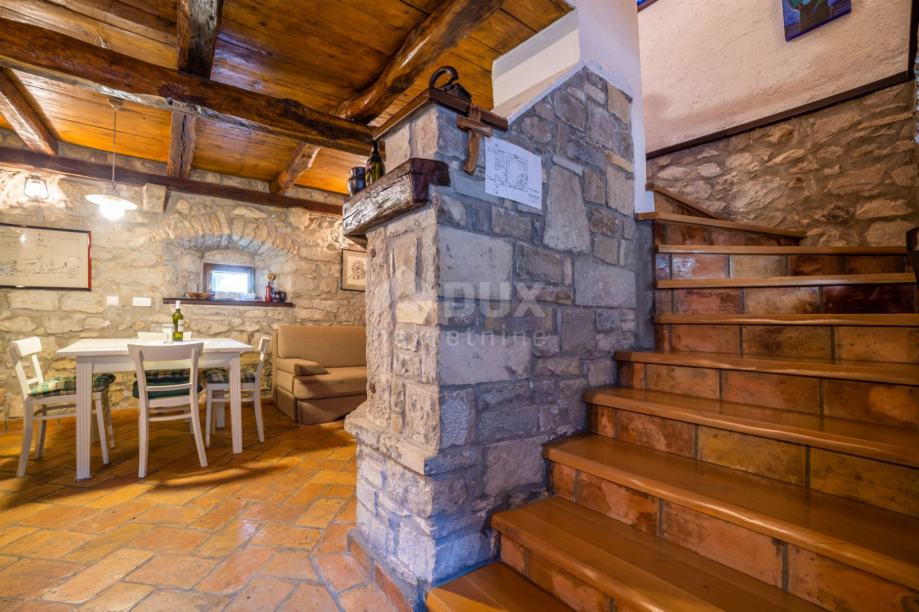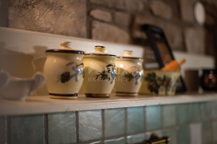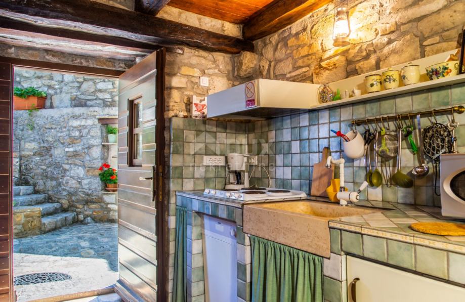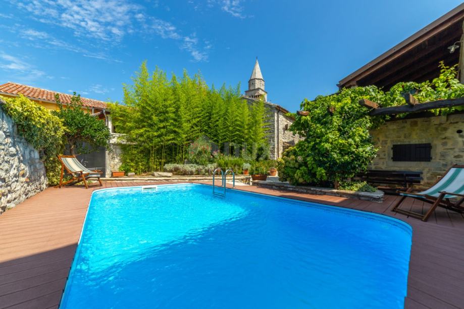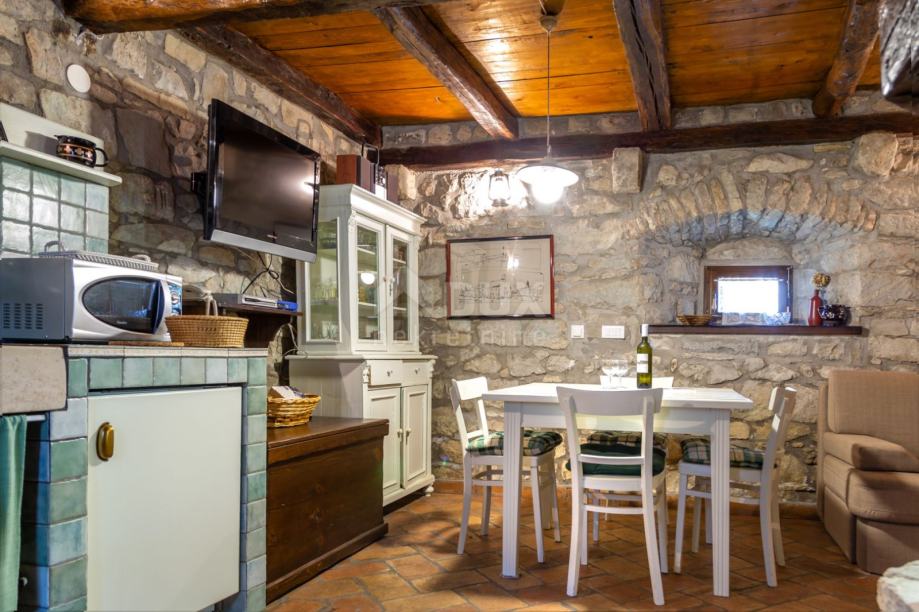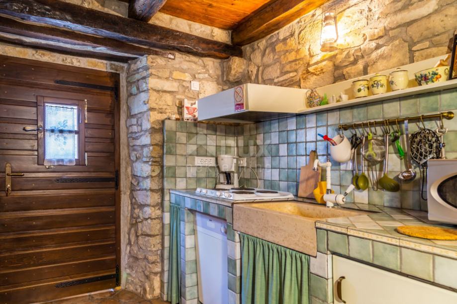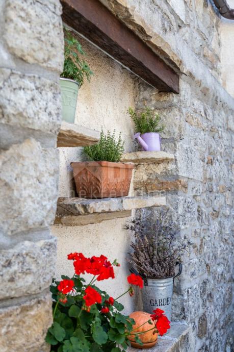U ponudi imamo tri kamene kuće sa zajedničkim zatvorenim dvorištem u kojem je smješten bazen. Datiraju iz 18. stoljeća, u potpunosti obnovljene 2010. ukrašene drvenim gredama i autentičnim namještajem i mnoštvom povijesnih detalja. Svaka dolazi s otvorenim dnevnim boravkom s kaminom, blagovaonicom i kuhinjom. Na raspolaganju su podno grijanje i klima uređaj u svakoj sobi, LCD satelitska TV i perilica posuđa te svi ostali mogući sadržaji za moderan život. Zajedničko dvorište s opremom za roštilj ograđeno je tradicionalnim kamenim zidom i obiluje mediteranskim biljem. Tamo se gosti mogu opustiti na ležaljkama pored bazena. Domaća jela mogu se poslužiti na licu mjesta na zahtjev, a najbliži bar i restoran koji poslužuju istarske specijalitete udaljeni su 200 m. Najbliža trgovina prehrambenih proizvoda udaljena je 300 m.