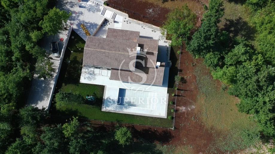 Vila je pažljivo projektirana kako bi se skladno uklopila u prirodni ambijent, uz korištenje prirodnih materijala poput kamena, drva i betona. Čiste linije, funkcionalan raspored i snažna veza interijera s eksterijerom čine ovu nekretninu pravim primjerom suvremene istarske arhitekture.