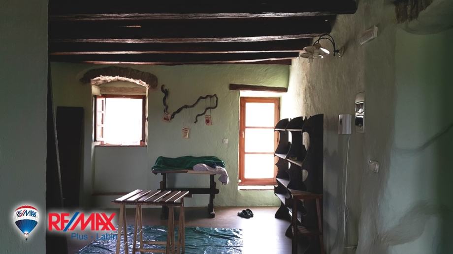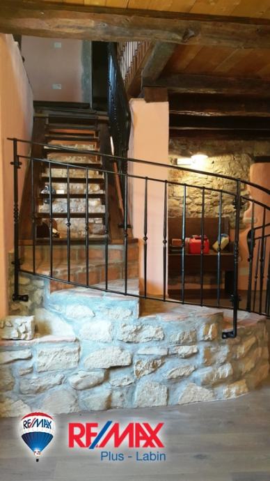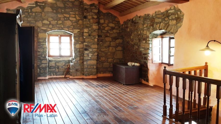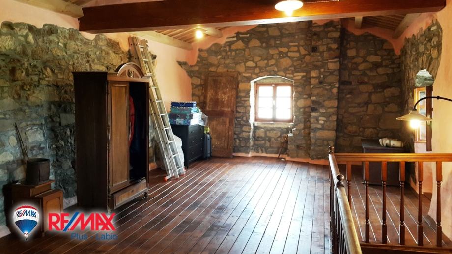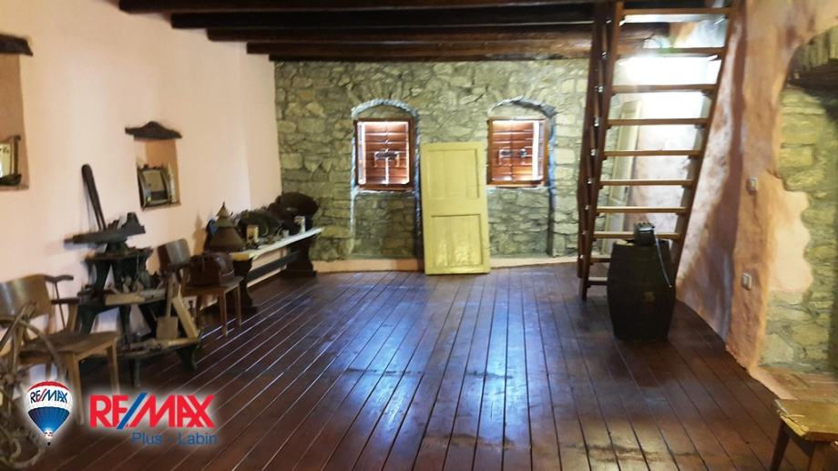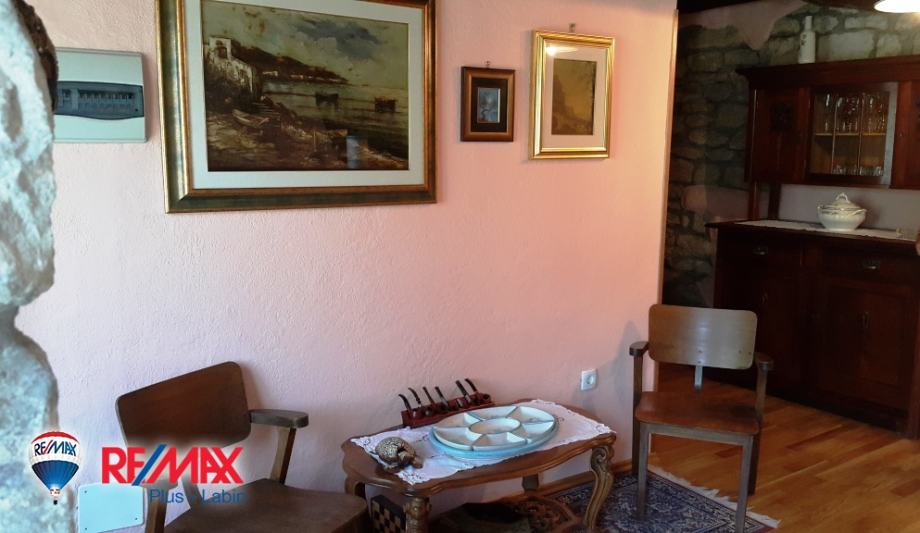 Na prvi kat se ulazi preko vanjskih kamenih stepenica u prostor koji objedinjuje dva salona i dva toaleta te unutarnjim stepeništem ulazimo na drugi kat s dvije komforne prostorije po 45 m2 svaka.