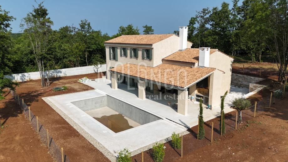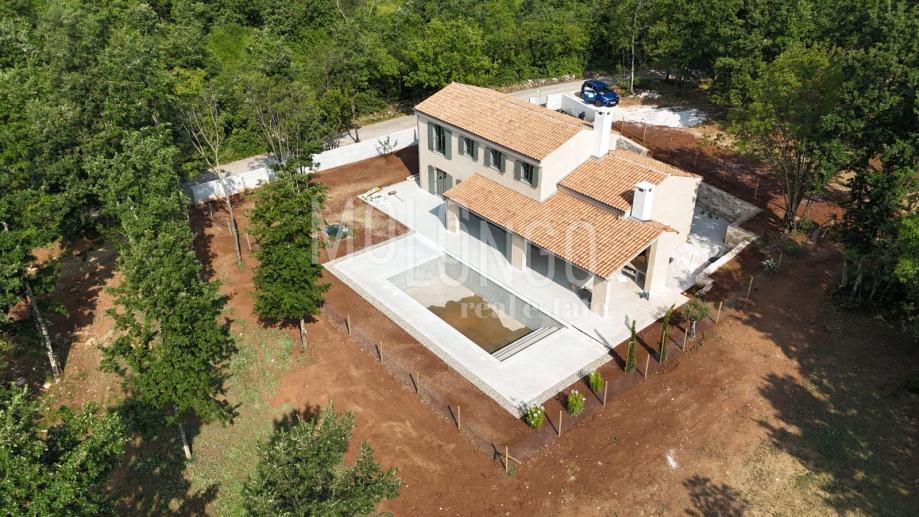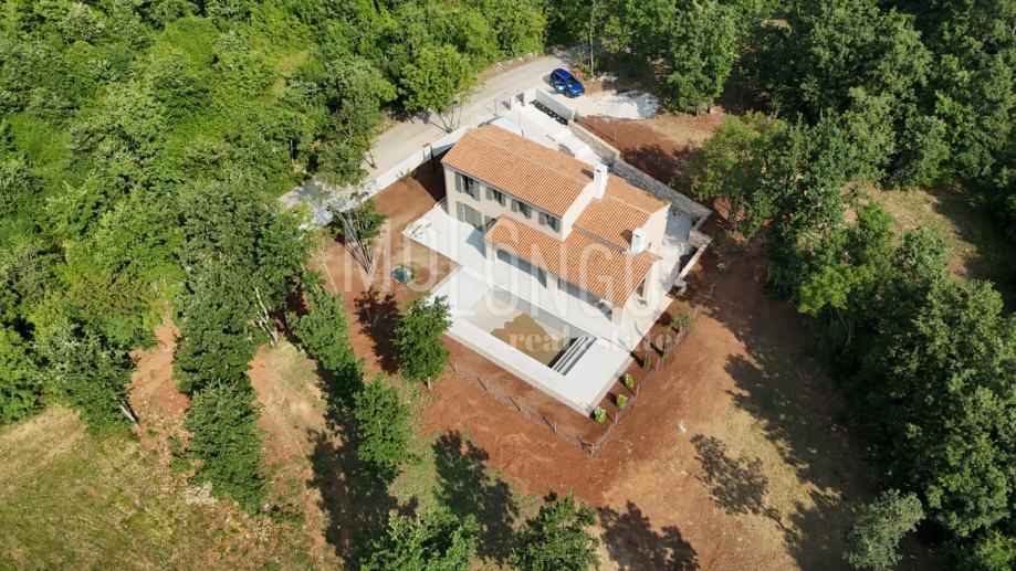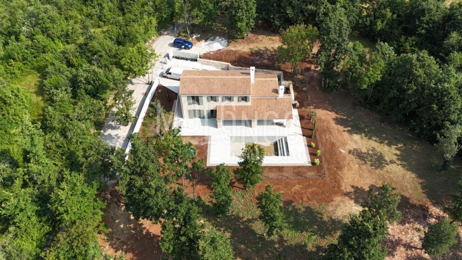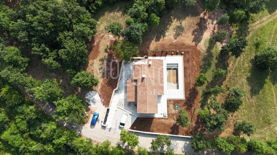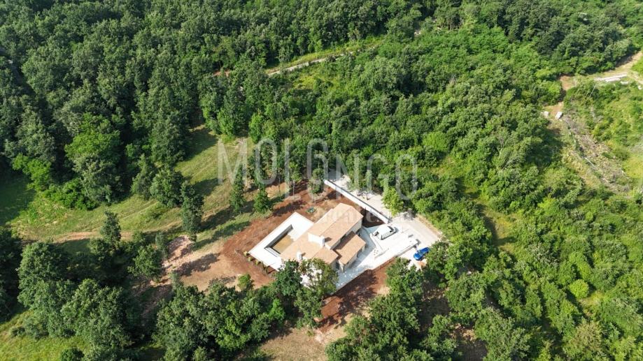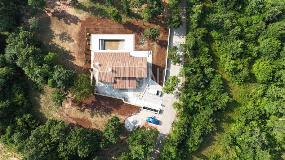 Ova moderna vila, pažljivo je projektirana kako bi se stopila s okolinom, koristeći prirodne materijale poput kamena, drva i betona. Čiste linije, funkcionalnost i skladan odnos interijera i eksterijera čine ovu kuću pravim biserom suvremene istarske gradnje.
