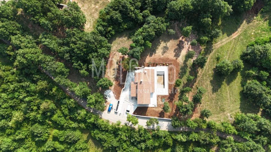 Površina kuće iznosi 170 m² stambenog prostora, uz 80 m² natkrivenih terasa, na prostranoj parceli od cca 1000 m². Otvoreni pogledi prema okolnoj prirodi i bazenu moguće je uživati i s prizemlja i s kata.