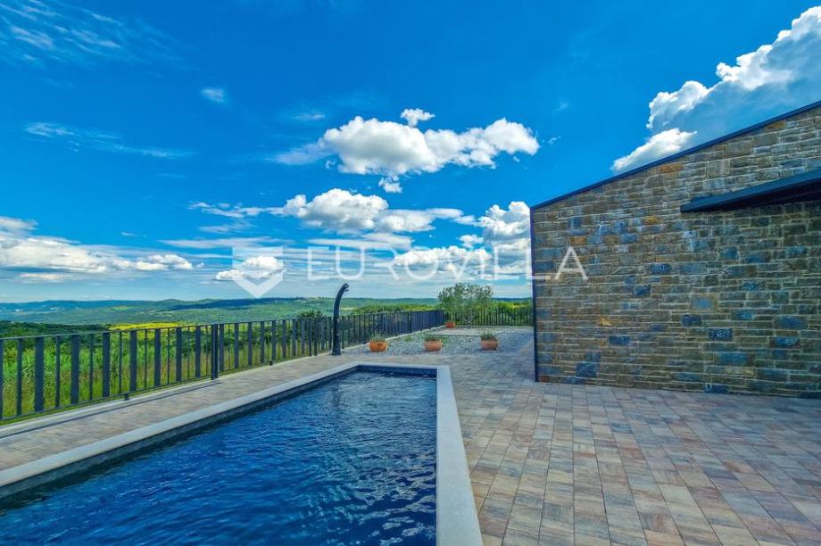 Istria, Grožnjan, surroundings. House with a total area of 145m2, with two bedrooms, a swimming pool and a unique view of Motovun and the Mirna river valley. This beautiful one-story house consists of a living room with kitchen and dining room, two bedrooms, each with its own bathroom, and a...
