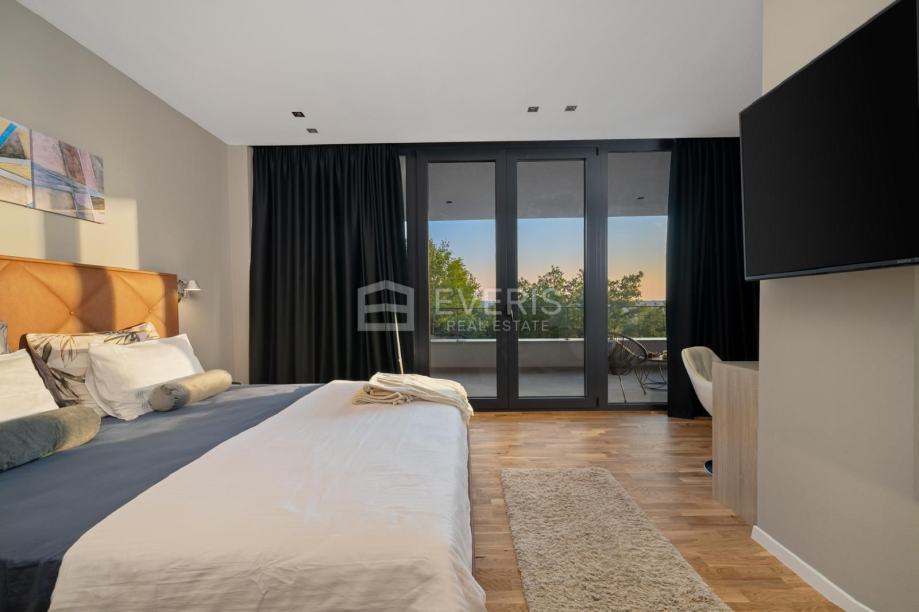 Nudi suvremeni luksuz, a prostire se na 2,169 m2 zemljišta s mogućnošću dodatne gradnje manjeg objekta ili garaže.