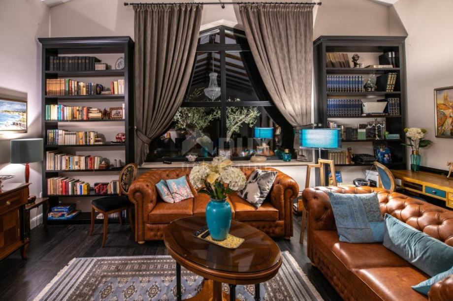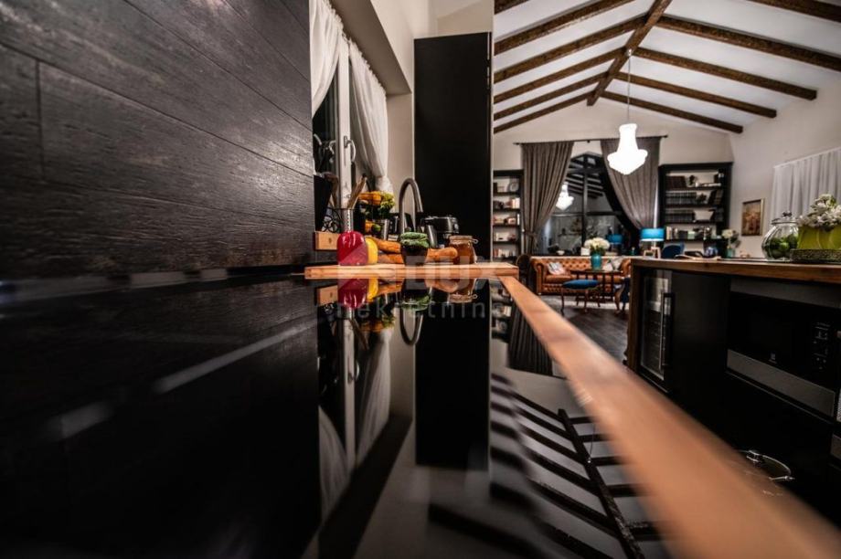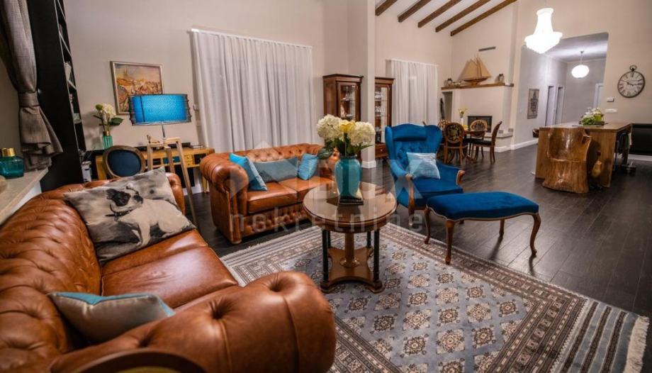 Luksuzna kuća sastoji se od dnevnog boravaka i kuhinje sa blagovaonom, 3 spavaće sobe , garderobe, radne sobe, 2 kupatila, WC-a i terasa.