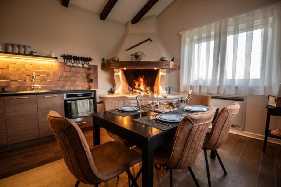 Kuća se grije/hladi uz ventil konvektore, 2 kamina (kamin u glavnoj kući povezan je na kompletan sustav centralnog grijanja- tada se sve prostorije griju na drva a ne na struju), solarni paneli za toplu vodu. Podno grijanje je u svim kupatilima.