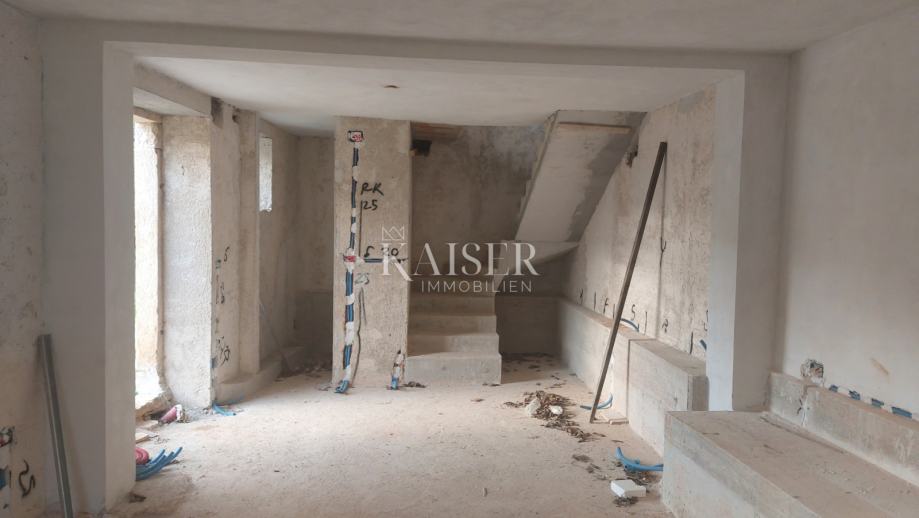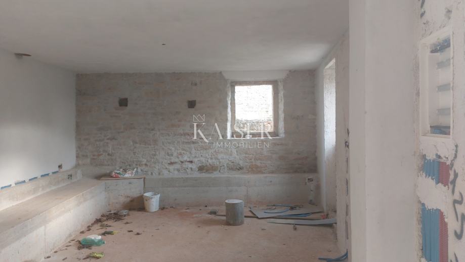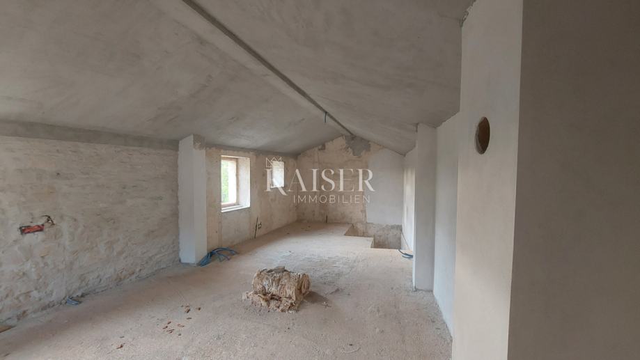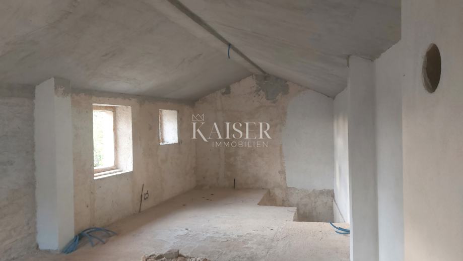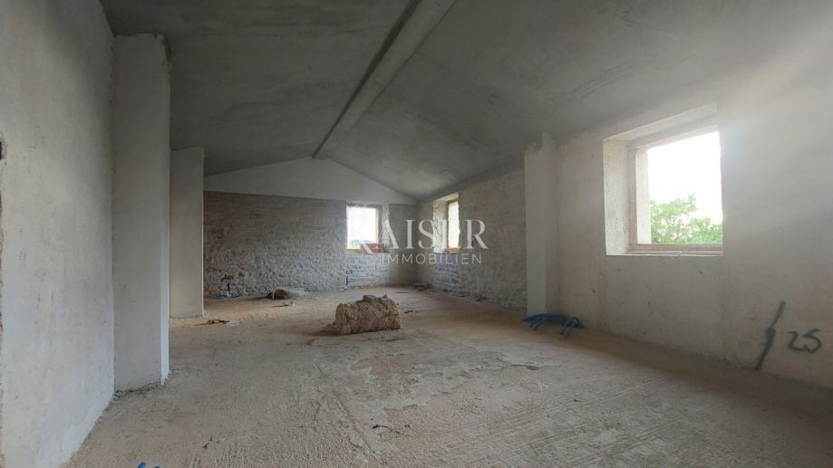 U mirnom selu s tek nekoliko kuća, smjestila se samostojeća kamena kuća površine 90 m2, trenutno u rohbau fazi uređenja. Raspoređena je kroz prizemlje i potkrovlje; u prizemlju su smješteni ulazni hodnik, kuhinja sa blagovaonom i dnevnim boravkom otvorenog tipa i wc. Unutarnjim stepeništem penjemo se na prvi kat na kojem novi vlasnik može napraviti raspored po želji, a predviđene su dvije spavaće sobe i kupaonica. Kuća ima novu temeljnu ploču sa hidroizolacijom, unutarnje stepenište, međukatnu armirano-betonsku ploču, novi krov sa toplinskom izolacijom, u potpunosti su očišćeni vanjski i unutarnji zidovi te fugirani vodonepropusnom bijelom fugom kako bi se očuvao tradicionalni izgled. Napravljena je septička jama, upojni bunar te instalacije za vodu. Dvorište je površine 200m2.