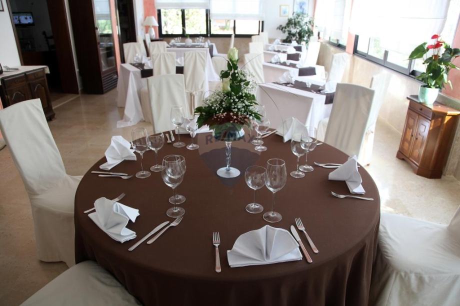 velika sala za objede, caffe bar, restoran s vrhunski opremljenom kuhinjom ,komora, pretkomora, pegla-ona i praona i kotlovnica.