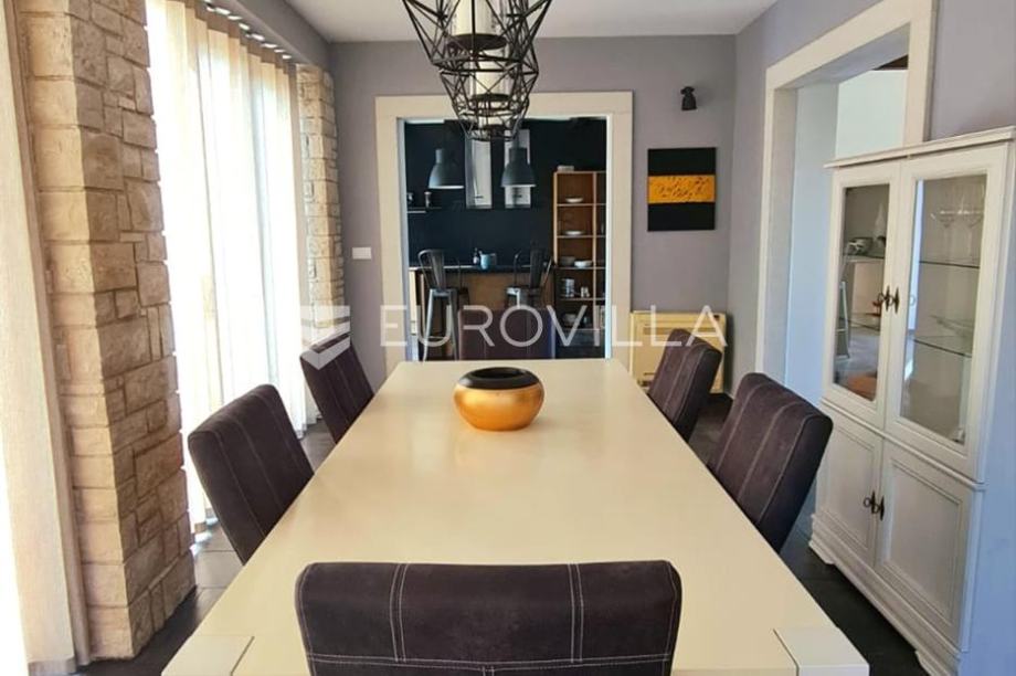 Smještena na izuzetno mirnoj lokaciji u Hrbokima okruženoj zelenilom, nalazi se ova prekrasna moderna villa bruto površine 170 m2 ( neto 159 m2 ) na prostranoj parceli od 1998 m2. Villa je koncipirana kao katnica sljedećeg rasporeda :u prizemlju se nalazi ulazni hodnik, kupaonica , dnevni...