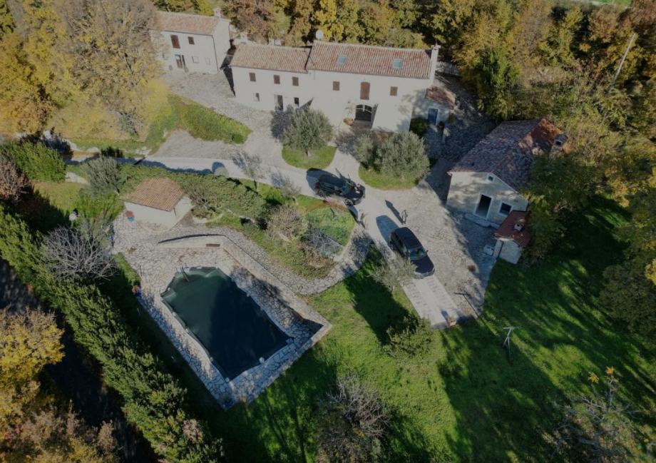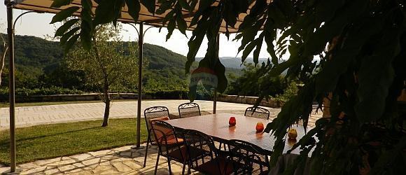 S panoramskim pogledom na idilični istarski krajolik prodajemo imanje koje se sastoji od četiri uređene kamene kuće s ukupno šest spavaćih soba.