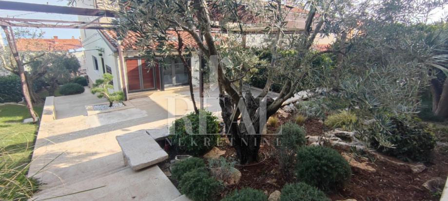 Na stražnjoj stani kuće nalazi se prekrasno uređeno dvorište u kojem se nalazi velika natkrivena terasa, prostor za roštilj kao i jacuzzi. Cijela okućnica je u izvrsnom stanju, podovi su od visokokvalitetnog mramora, travnjak oko kuće je uredan te se nalazi i manja fontana s raznim svijetlima.