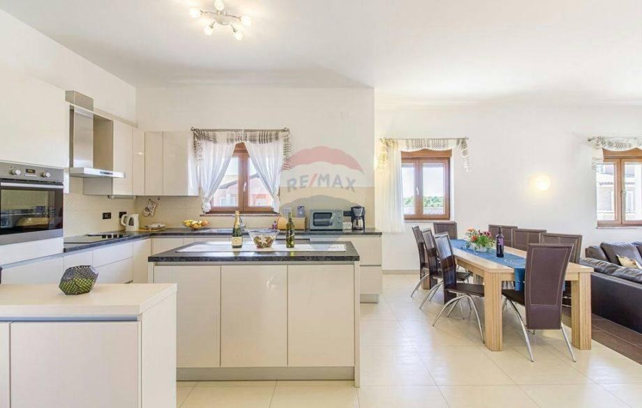 Prodaje se samostojeća kuća s bazenom u Jadreškima. Kuća je nova i kompletno opremljena. Sastoji se od hodnika, dnevnog boravka, četiri spavaće sobe ( svaka sa svojim kupatilom), dva toaleta, terasa,pet parkirnih mjesta. Kuća ima predivnu okućnicu na kojoj je i bazen i roštilj. U sklopu kuće je i ostava, te druga ostava za posteljinu, te kolektor za toplu vodu (300 l). Postoji i podrum koji je odličan za iskoristiti. Idealna je nekretnina za odmor ili za osobe koje se žele baviti iznajmljivanjem.