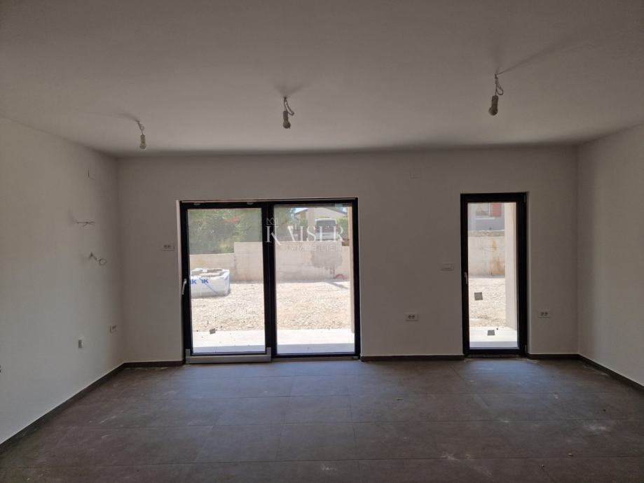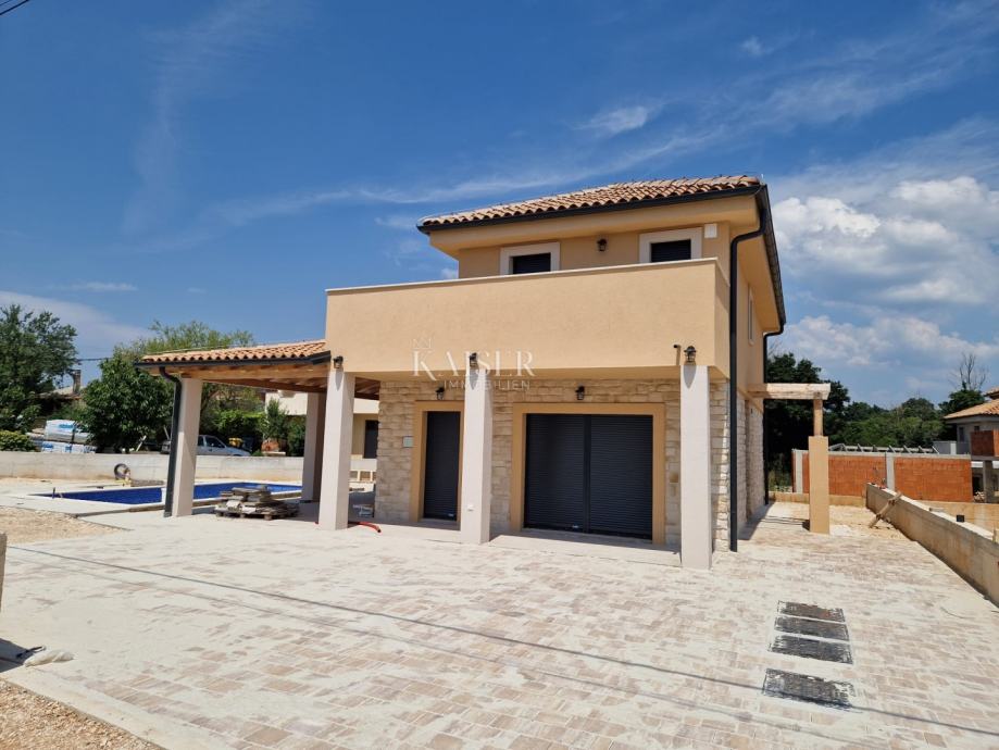 Kuća ima neto stambenu površinu od 155 m2 i proteže se na dvije etaže. U prizemlju se nalazi prostrani dnevni boravak spojen s kuhinjom i blagovaonicom, a ima i izlaz na natkrivenu terasu. Tu je još i spavaća soba s kupaonicom i jedan WC za goste. Na prvom katu su dvije spavaće sobe od kojih svaka ima svoju kupaonicu, a jedna ima i izlaz na terasu. Grijanje i hlađenje je putem dizalica topline zrak - zrak i podno grijanje na struju u kupaonicama. Okućnica ima oko 495 m2 i bazen od 28 m2.