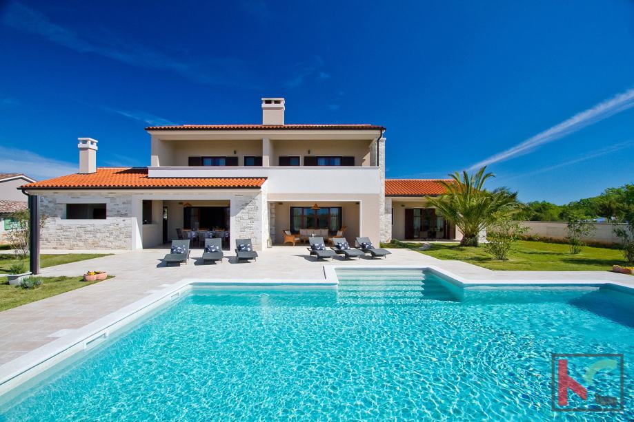 Prodajemo atraktivnu Villu smještenu na mirnoj lokaciji u Juršićima, ukupne je površine 400m2 sa uređenom okućnicom čija površina iznosi 1986m2 sa sustavom za navodnjavanje maslinika od 30-ak stabala, nekoliko palmi i stabla sa voćkama u rodu.
