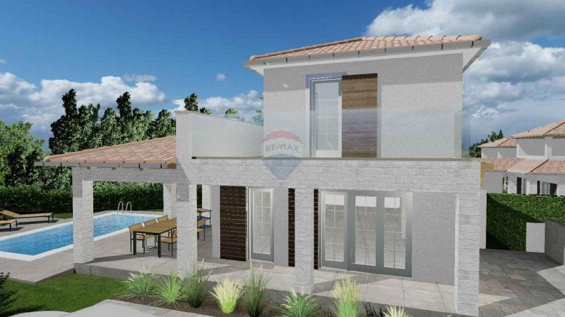 Kuća se sastoji od prizemlja koje čini dnevni boravak s kuhinjom i blagovaonom, jedna spavaća soba s kupaonom, natkrivena terasa sa kaminom i toalet, a na katu kuće se nalaze dvije spavaće sobe i svaka sa kupaonom i terasom. Grijanje je podno u prizemlju, a na katu je podno u kupaonama, a sve ostale prostorije imaju klima uređaj za grijanje i hlađenje.