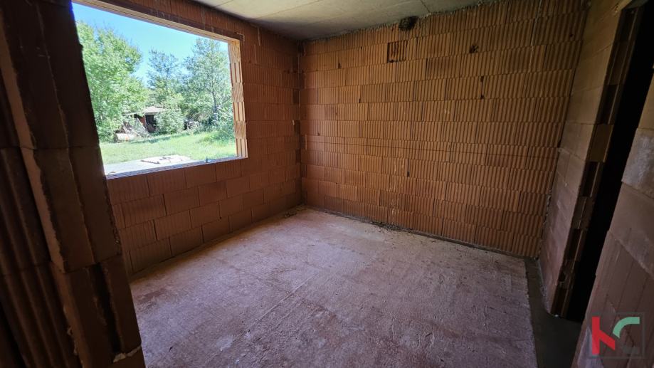 Na mirnoj lokaciji nedaleko naselja Juršići prodajemo započetu gradnju površine 200m2, sa izgrađenim bazena.