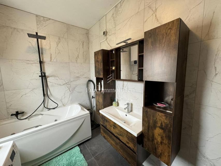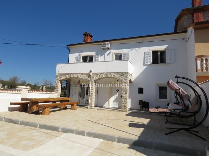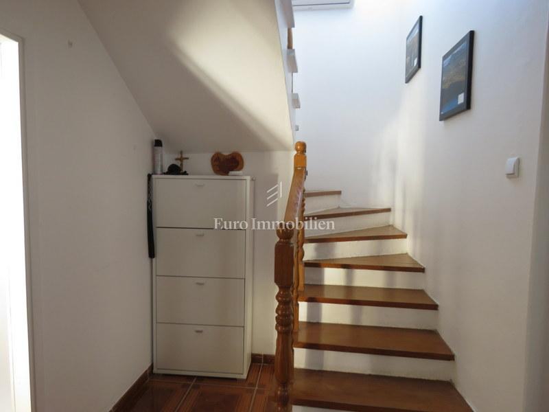 Kamena kuća prva je u nizu, ima 110 m2 stambene površine, a smještena je na parceli površine 660 m2. Proteže se na prizemlje, kat i potkrovlje. U prizemlju se nalazi kuhinja s blagovaonicom, spavaća soba i kupaonica. Drvenim stepenicama dolazi se do prvog kata gdje se nalaze prostrani dnevni boravak s izlazom na terasu, dvije spavaće sobe i kupaonica. U potkrovlju su još dvije sobe. Na lijepo uređenoj okućnici nalaze se garaža, ljetna kuhinja, bazen i prostor za odmor i druženje.