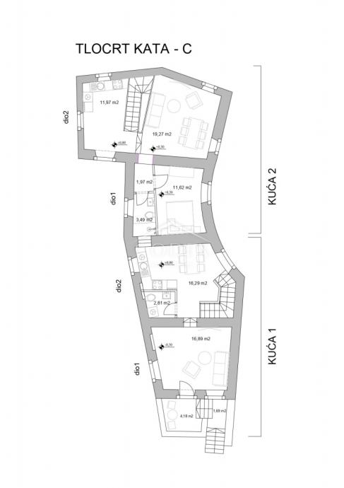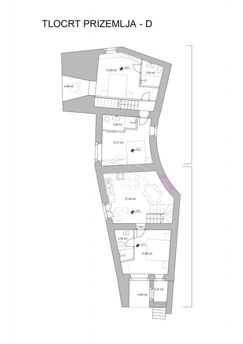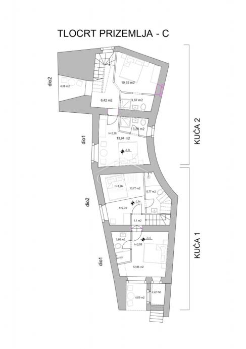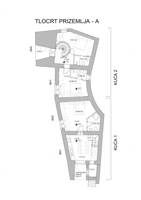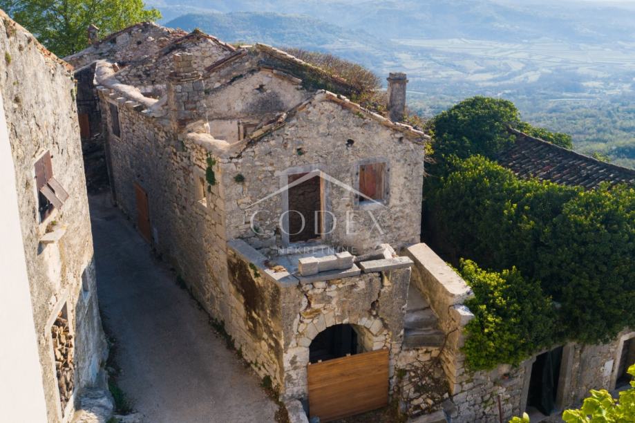 U samom srcu povijesne jezgre krije se ova čarobna kamena vila, koja čeka svoju obnovu i nove vlasnike. S prekrasnim pogledom na okolnu dolinu, ova nekretnina predstavlja jedinstvenu priliku za sve ljubitelje istarske baštine. Autentični kameni zidovi i drvene grede samo su neke od izvornih elemenata koje krase ovu nekretninu. Obnovom možete stvoriti luksuzni smještaj za turiste ili oazu mira za sebe i svoju obitelj.