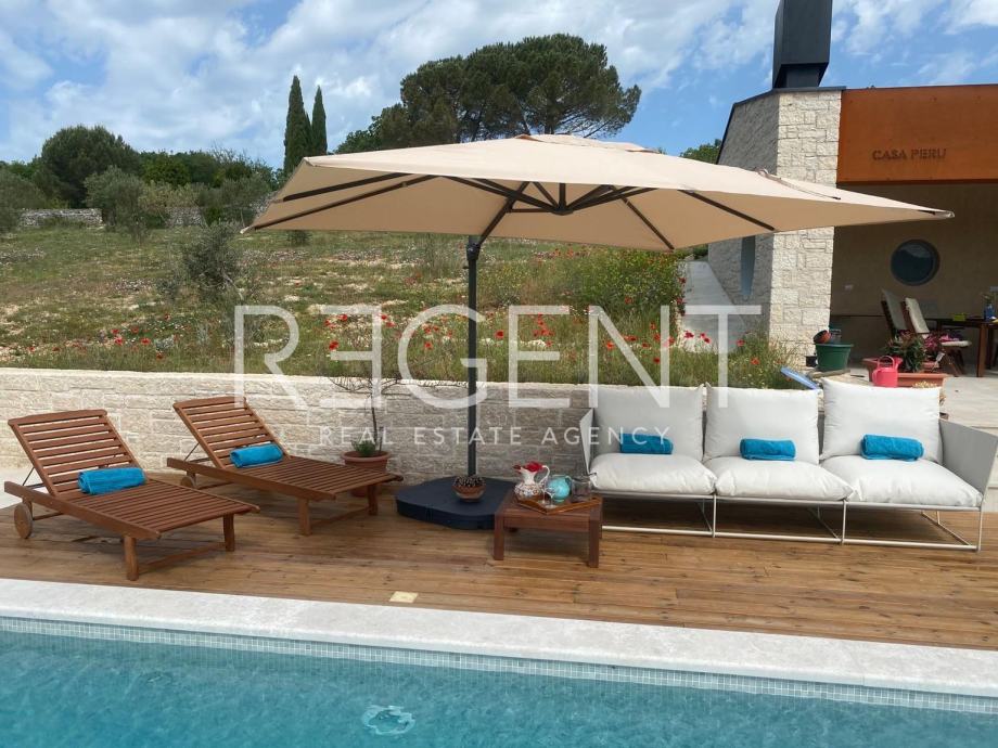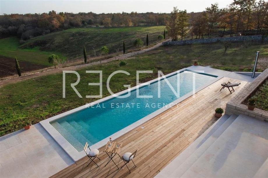 U predivnom prirodnom okruženju, ovo jedinstveno imanje od 36.000 m² nudi savršenu ravnotežu između luksuza, privatnosti i autentičnog istarskog šarma. Okruženo tradicionalnim suhozidima, ovo prostrano zemljište pruža idiličan bijeg od užurbanog života, dok istovremeno omogućuje vrhunski komfor.Glavna kamena kuća, smještena na imanju, prostire se na 155 m² NKP i savršeno spaja tradicionalnu arhitekturu s modernim rješenjima. Prilaz kući vodi bijeli put dug 300 metara, stvarajući dojam ekskluzivnosti i intime.Kuća se proteže na dvije etaže. U prizemlju se nalazi prostrani dnevni boravak s kaminom, povezan s kuhinjom i blagovaonicom u open space konceptu, zatim gostinjski toalet, spavaća soba s vlastitom kupaonicom, sauna te praonica rublja.Na katu su dvije prostrane spavaće sobe, svaka s privatnom kupaonicom i terasom s koje se pruža predivan pogled na okolni krajolik. Cjelokupni interijer odiše toplinom i udobnošću, uz vrhunsku opremu poput klimatizacijskog sustava, sigurnosnog nadzora i alarma.Vanjski prostor osmišljen je za potpuni užitak i opuštanje. Bazen od 50 m² s grijanjem i sustavom slane vode, natkrivena ljetna kuhinja te prostrano sunčalište idealni su za boravak na otvorenom. Maslinik s 50 stabala godišnje daje oko 230 kg ploda, dok raznolika mediteranska vegetacija dodatno obogaćuje ovaj poseban ambijent.Osim glavne parcele od 2.303 m², imanje uključuje i dvije građevinske parcele ukupne površine 6.193 m², za koje je već razrađeno idejno rješenje za dodatnu gradnju. Također, na raspolaganju je 26.000 m² poljoprivrednog zemljišta, pružajući budućem vlasniku raznolike mogućnosti – bilo za vlastiti užitak ili kao investicijski projekt s velikim potencijalom.Smješteno na mirnoj lokaciji, imanje nudi privatnost, ali i izvrsnu povezanost s ključnim sadržajima. Pula aerodrom je udaljena 33 km, dok su prekrasne plaže Limskog kanala na 6 km, a Rovinj na samo 10 km.Ova nekretnina predstavlja jedinstvenu priliku za one koji traže spoj luksuza, prirodnog ambijenta i investicijskog potencijala.Za više informacija i dogovor o razgledavanju, slobodno nas kontaktirajte!Za više informacija, kontaktirajte našeg agenta na brojeve telefona: