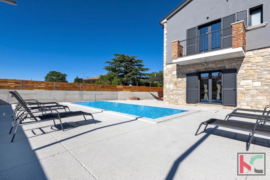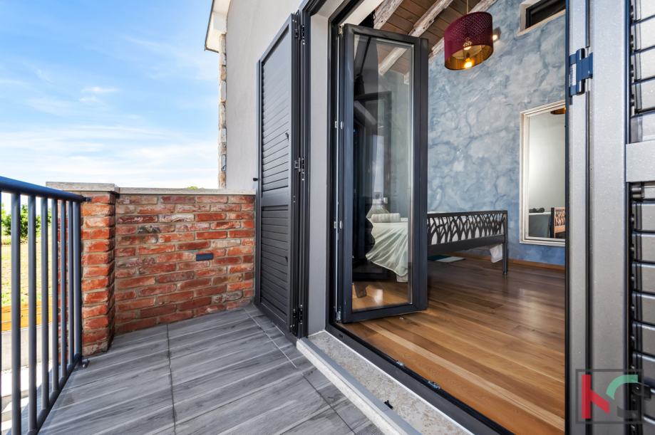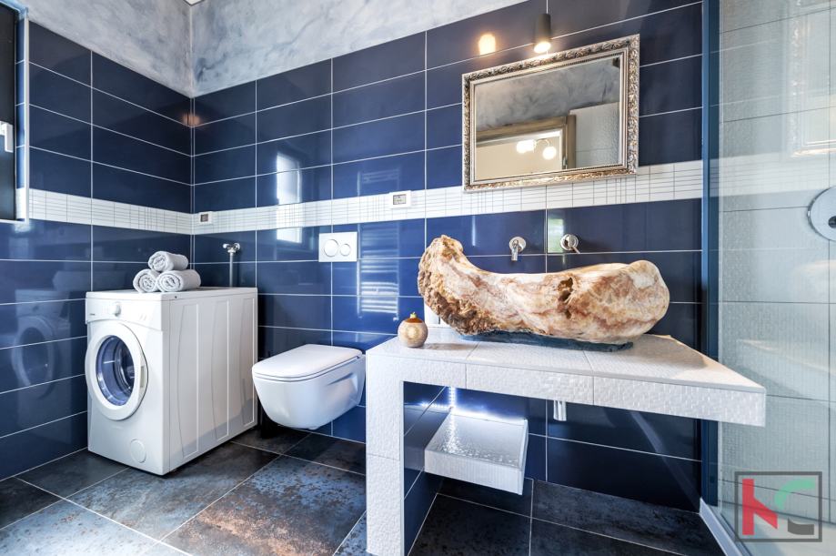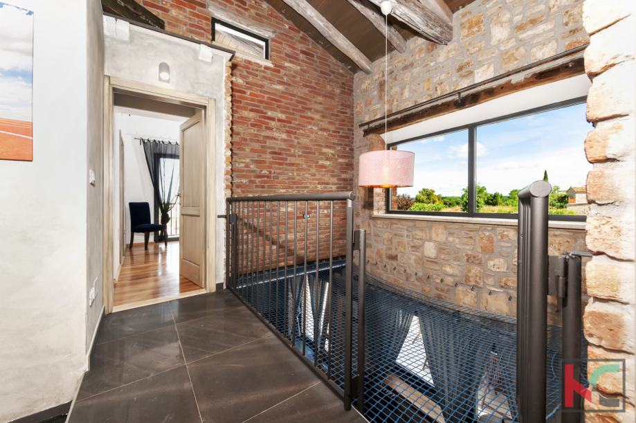 Ova predivna nekretnina građena je kvalitetnim materijalima, podovi su drveni, keramika talijanskog dizajna, umivaonici su ručni rad, stepenice od željeza te je stolarija aluminijska, s troslojnim staklom.