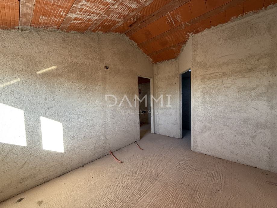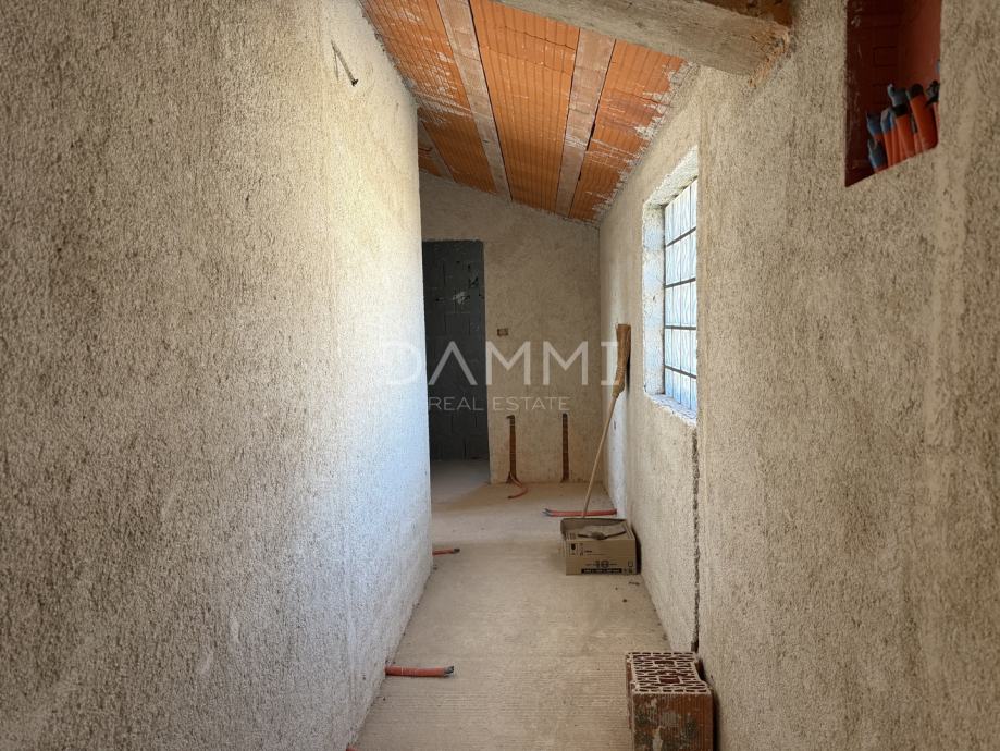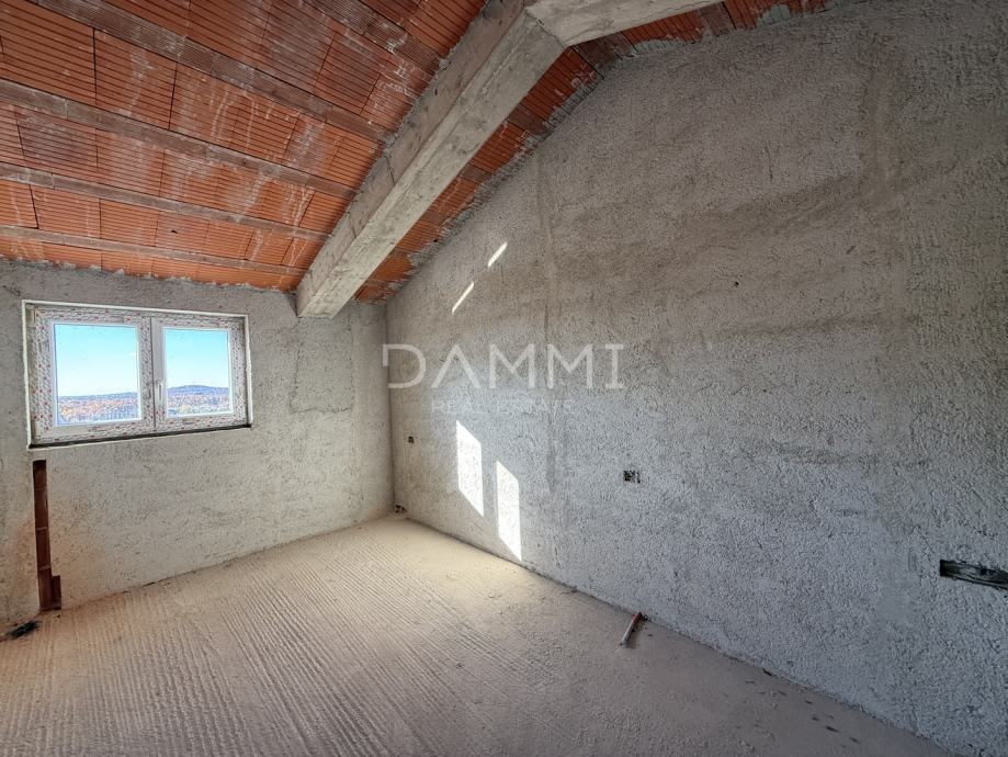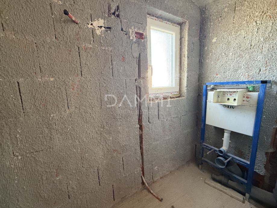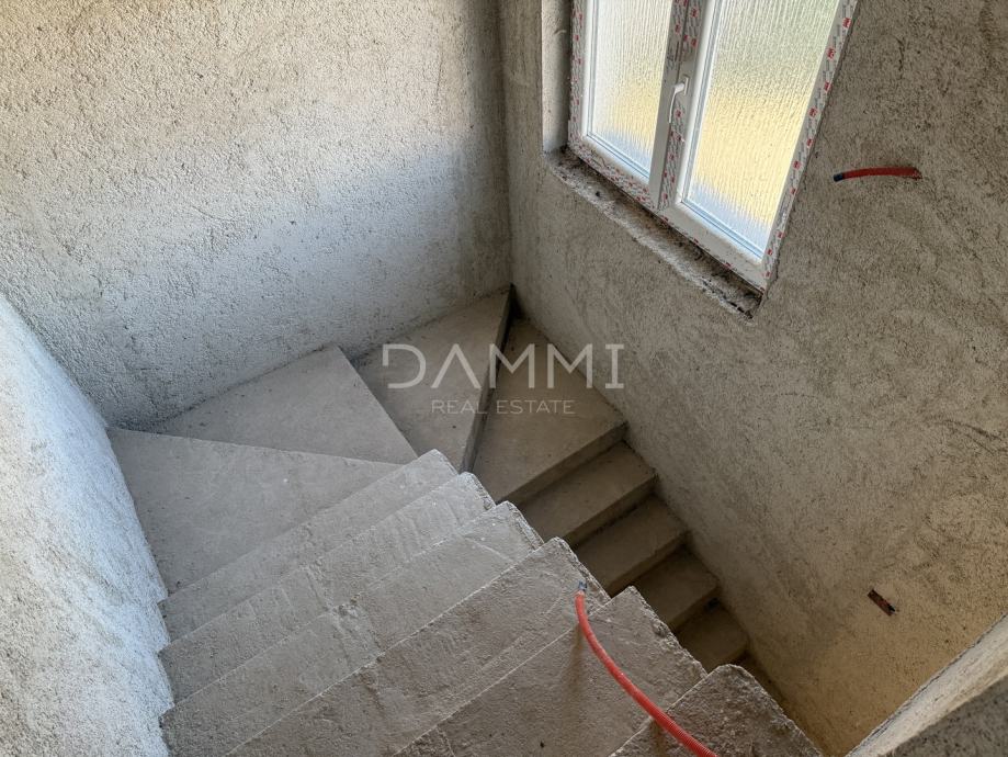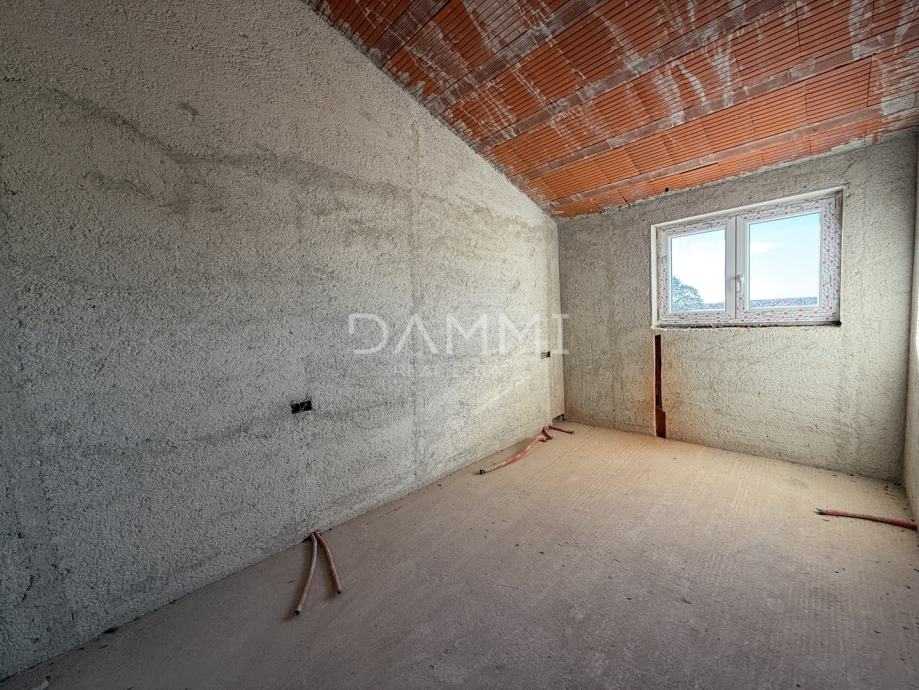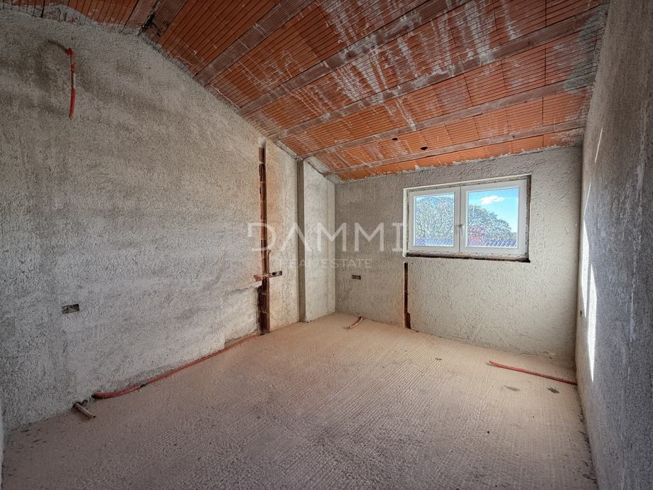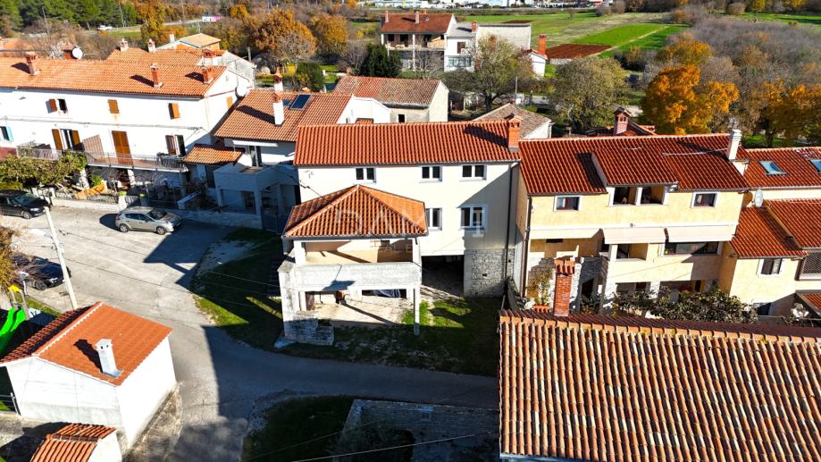 Prodajemo kuću u visokoj roh bau fazi na vrhunskoj lokaciji u zaleđu Rovinja, u mirnom selu Okreti blizu Kanfanara. Kuća se proteže na tri etaže ukupne površine 270 bruto kvadrata. U prizemlju se smjestio prostor za garažu gdje stanu dva automobila. Na prvom katu predviđen je dnevni dio koji se sastoji od kuhinje, blagavaonice, dnevnog boravka, kupaonice i natkrivenog balkona, dok na drugom katu su se smjestile tri spavaće sobe od kojih jedna ima prostor za walk in ormar ili kupaonicu, te toalet. Kuća je opremljena PVC stolarijom i stiropol fasadom 10 cm, te ima priključak struje i vode.
