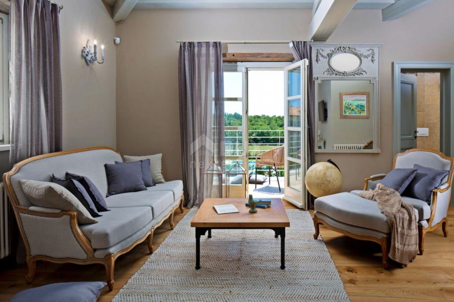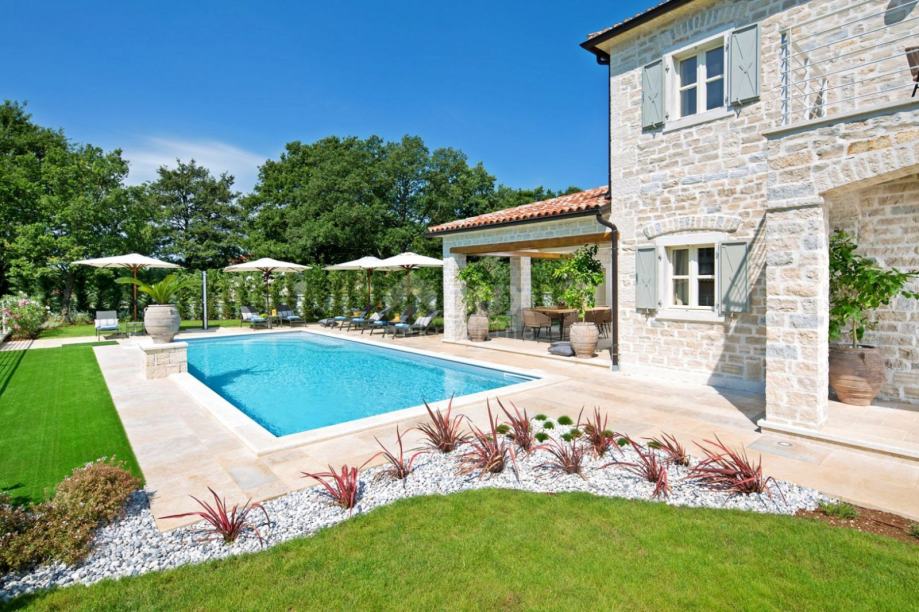Okružena zelenilom u pitomom susjedstvu nedaleko Kanfanara, na prodaju je luksuzna kuća s bazenom.