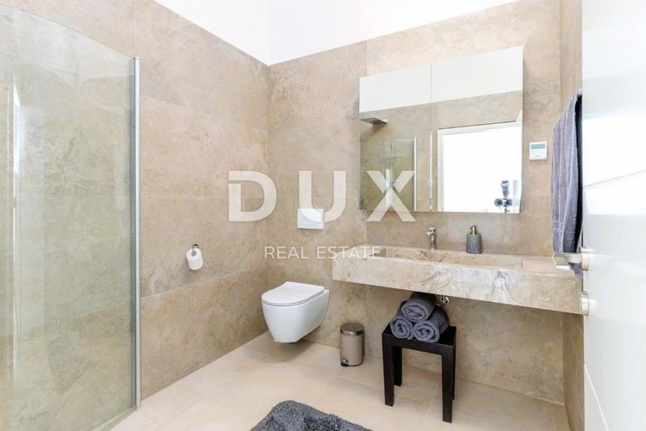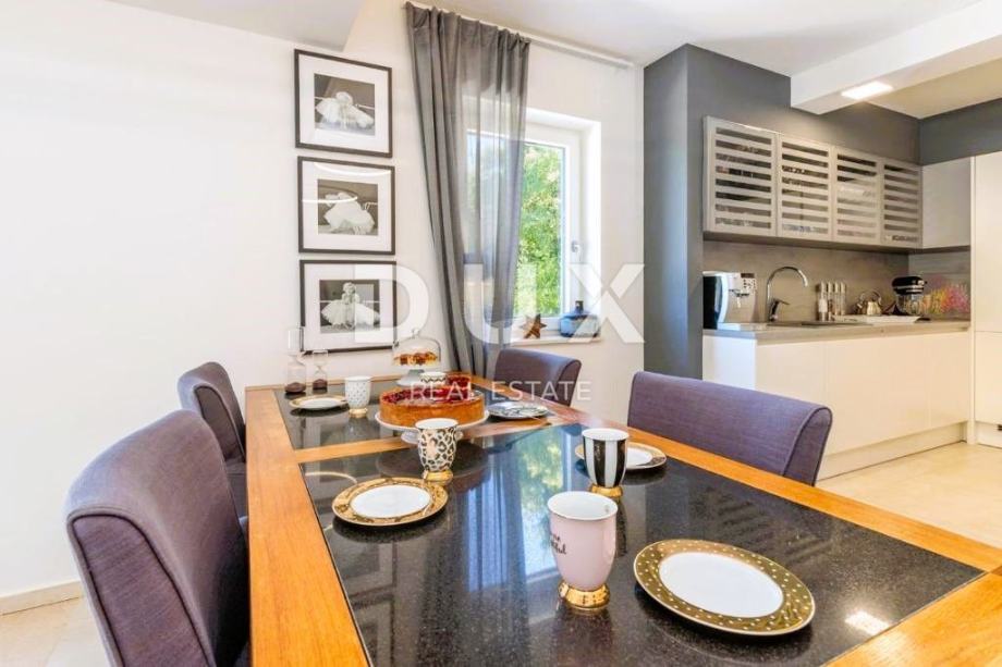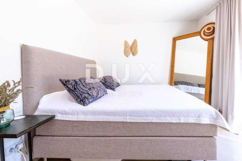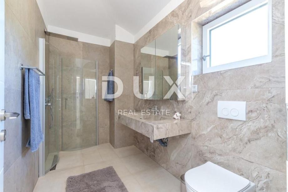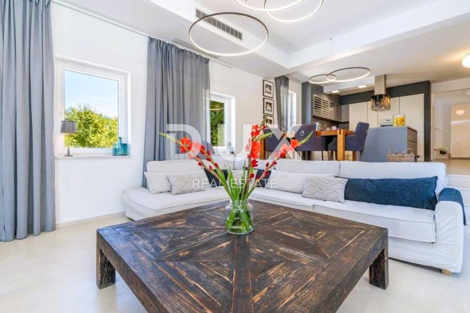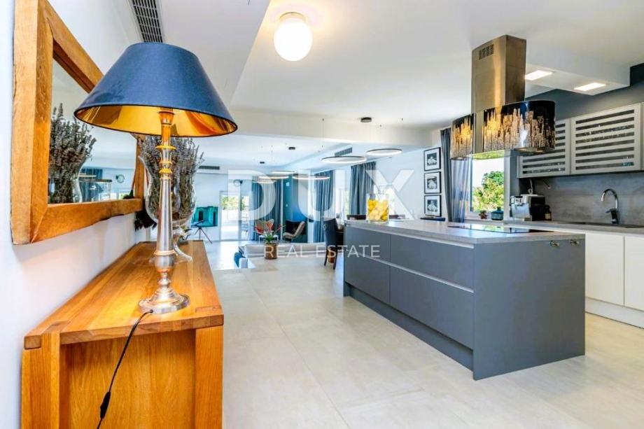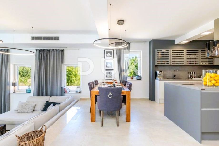 Posebnost ove predivne i unikatne nekretnine je svakako pogled na more koji se proteže s prizemlja te još mnoštvo detalja koji će vas oduševiti na prvu. Do svih sadržaja poput trgovina, obrazovnih te zdravstvenih ustanova je svega pet do deset minuta vožnje. S obzirom na lokaciju, opremljenost te nesmetani pogled na more, okoliš i zelenilo, nekretnina predstavlja odličnu priliku za obiteljski život ili kao investiciju za iznajmljivanje u turističke svrhe gdje je ova kuća ostvarila izvrsne rezultate.