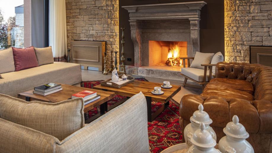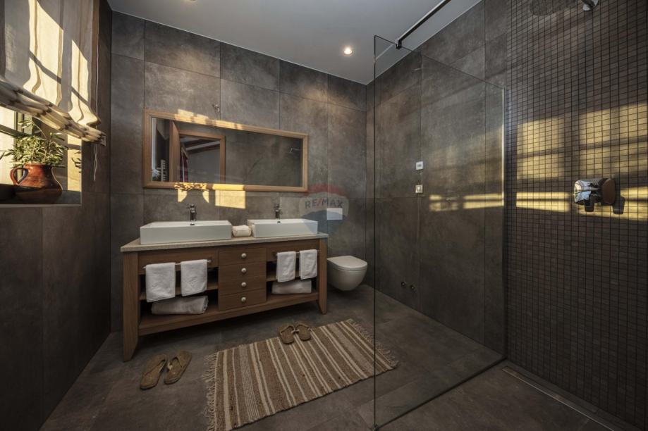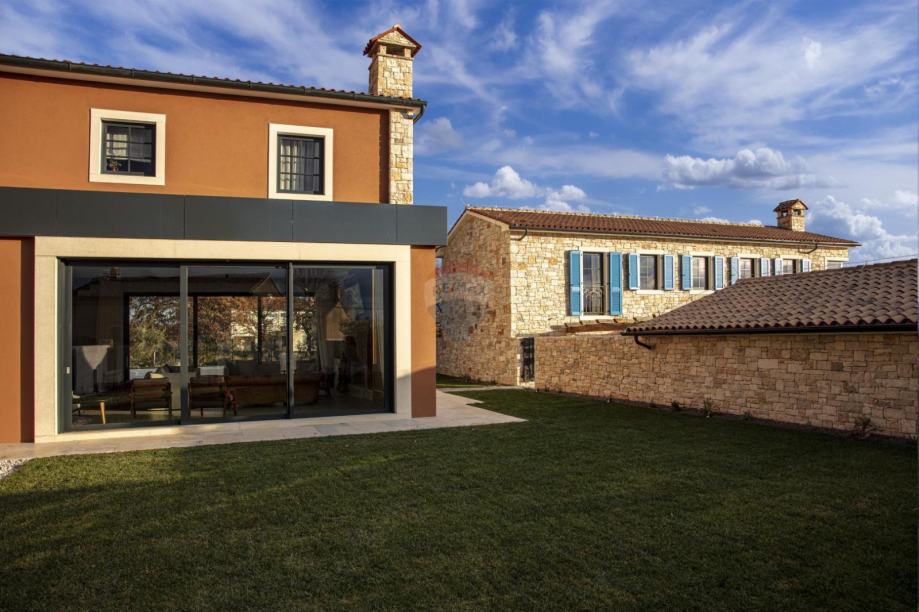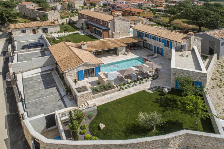 Najveća kuća na imanju nudi impresivan open-space ulazni prostor s prostranim dnevnim boravkom, u kojem se ističe romantični kamin na drva. Moderna, potpuno opremljena kuhinja i blagovaonica savršeni su za druženja i uživanje u hrani. Kuća ima 6 luksuznih spavaćih soba, svaka sa svojom privatnom kupaonicom, dodatni toalet, vešeraj i vinoteku. Vanjski prostor uključuje prekrasnu kuhinju opremljenu kaminom i krušnom peći, te spektakularni slani bazen sa slapom, vanjskim tušem i toaletom. Uz to, tu su i drvarnica, spremište te parking za 6 vozila.