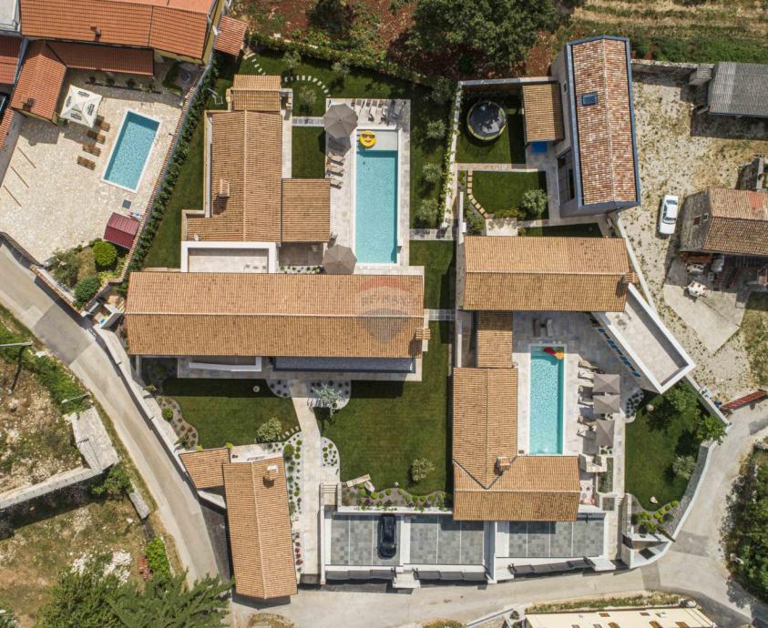 Kompleks čini 4 luksuzno opremljenih kamenih kuća građene od postojećih materijala,greda i kamena pomno sačuvanih prilikom rušenja prijašnjih kuća koji su ponovno iskorišteni za gradnju novih objekata i suhozida površine 2000 četvornih metara.