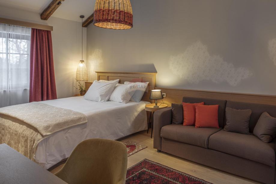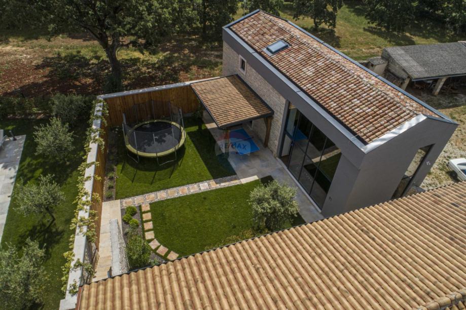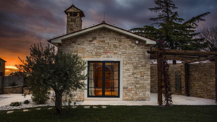 U istom dvorištu nalazi se šarmantna samostojeća kamena kuća s natkrivenom terasom, u kojoj su postavljene pločice i parketi dovedeni iz povijesnog dvorca, čime prostor odiše autentičnom poviješću i posebnim šarmom.