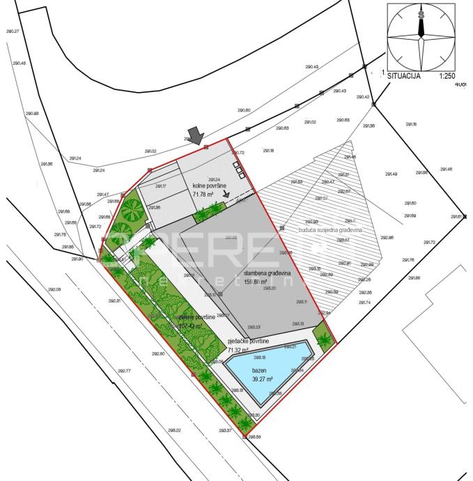 Površina vile iznosi 208 m2, dok je zemljište 470 m2.