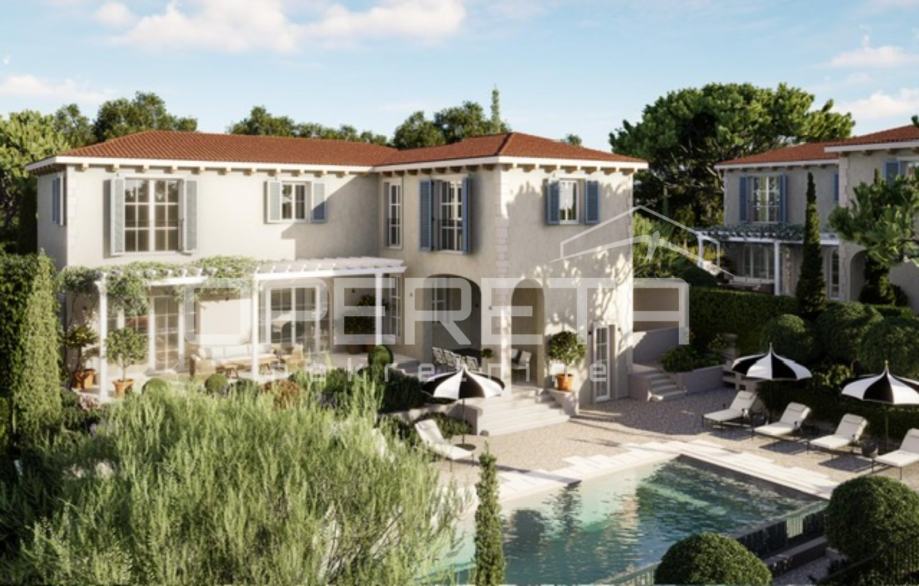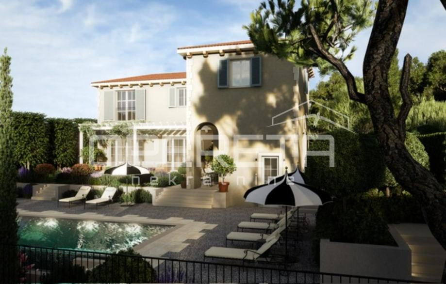 Projekt zamišljen kao velebna vila za odmor s bazenom u francuskom stilu spoja moderne arhitekture i tradicionalnih materijala