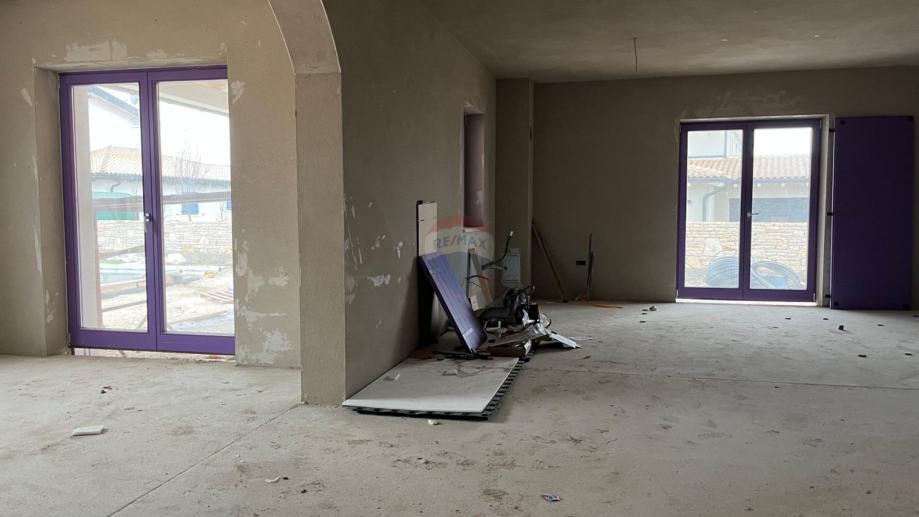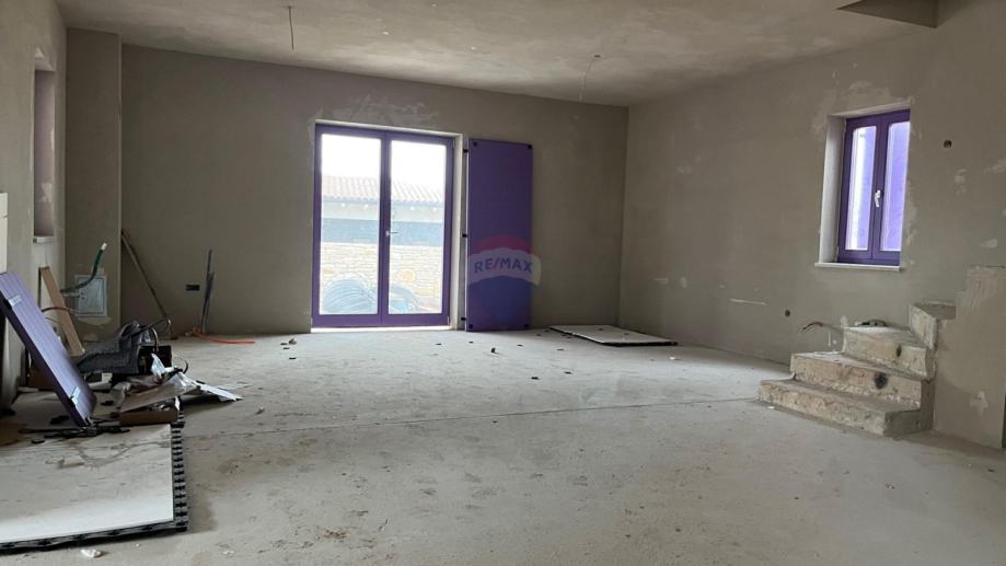 Trenutno su dovršeni unutarnjii radovi elektroinstalacije, vodoinstalacija, priprema za podno grijanje, kamene klupice, fasadna termoizolacija oblaganje kamenom dijela fasade.