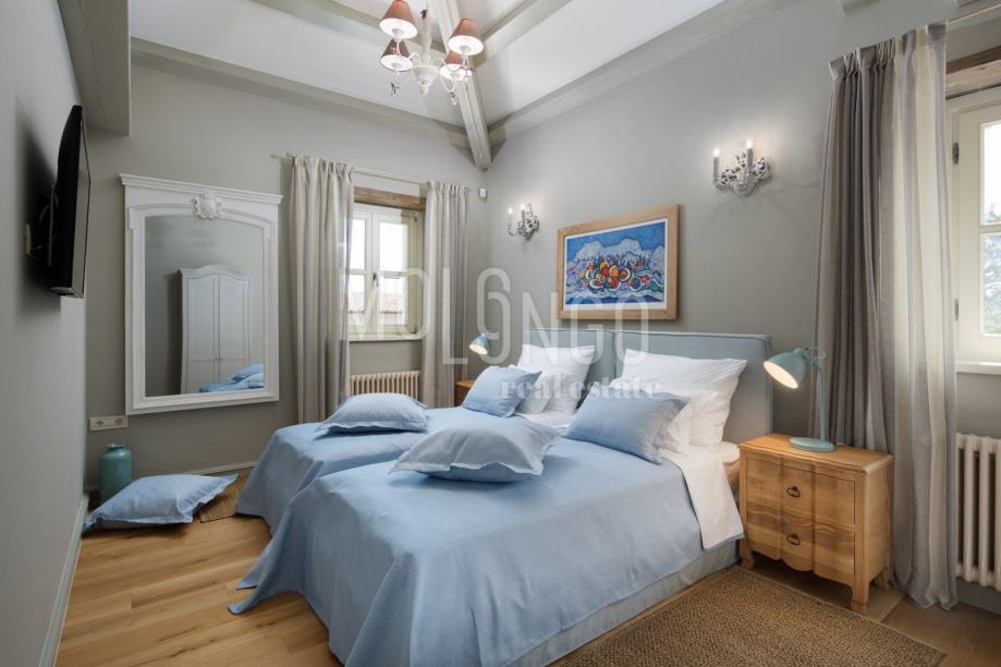 Na katu se nalaze tri spavaće sobe, svaka s vlastitim tuš/WC-om od čega dvije s bračnim krevetom i balkonom, te jedna dječja s dva odvojena kreveta.