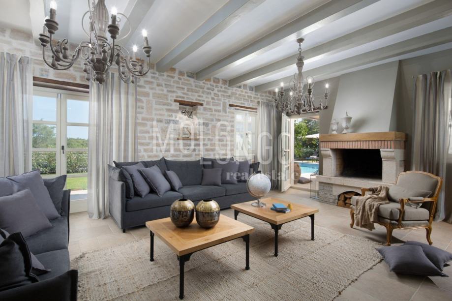 Luksuzna vila s bazenom površine 359 m2. Sastoji se od prizemlja i kata. U prizemlju se nalazi prostrani dnevni boravak s kaminom i SAT-TV, te izlazom na prostranu natkrivenu terasu sa stolom za objedovanje, kaminom za roštiljanje i lounge zonom, velika, potpuno opremljena kuhinja s blagovaonicom, jedna dvokrevetna soba s dvostrukim krevetom, vlastitim tuš-WC-om i izlazom na terasu, zaseban WC u dnevnom dijelu i tuš/WC na terasi.