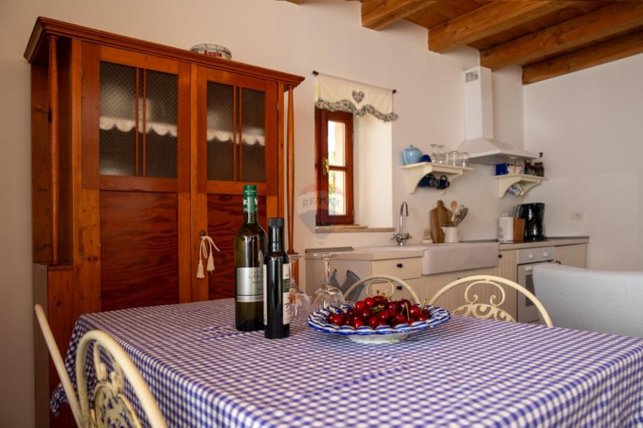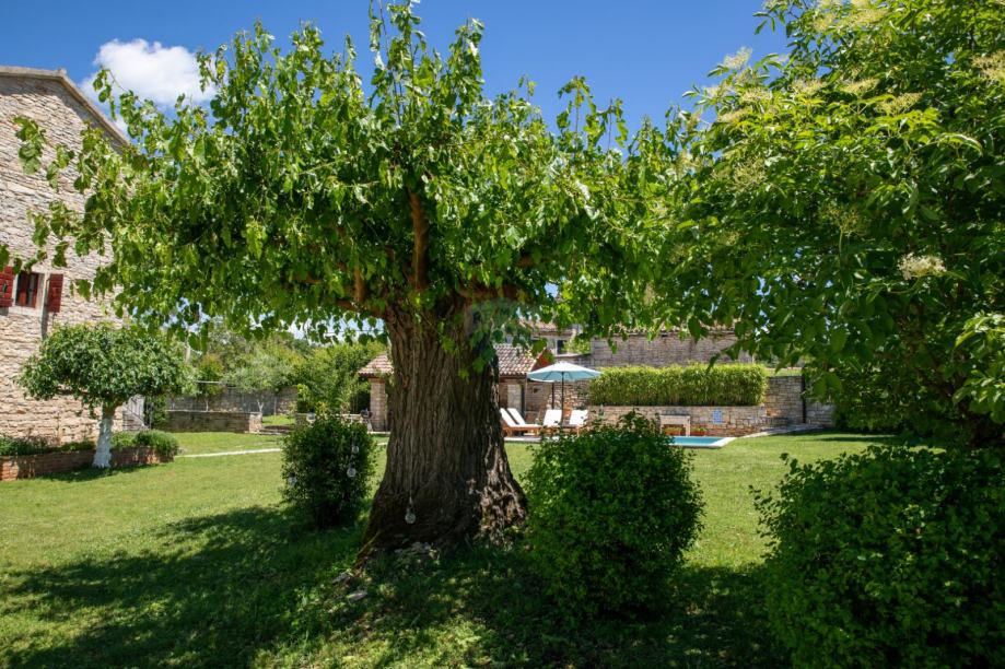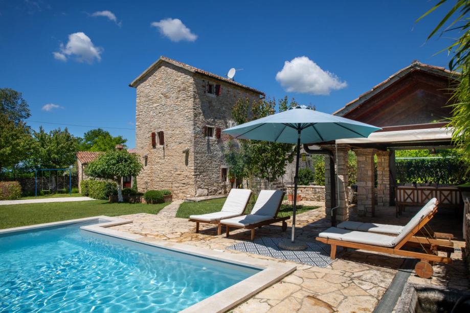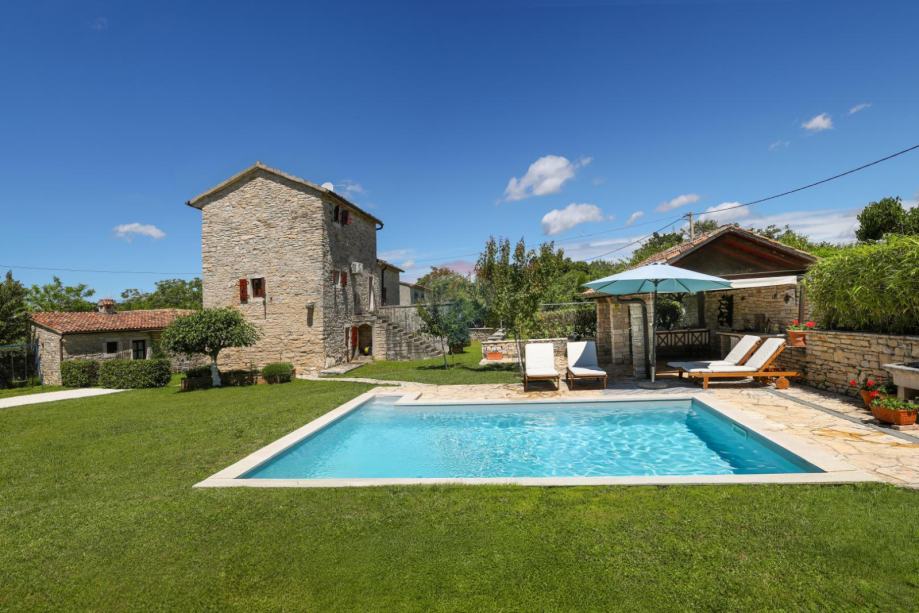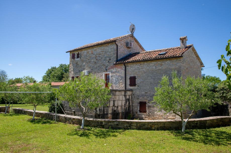 U malom selu između Žminja i Kanfanara s nekoliko kuća,prodaje se ova vrlo kvalitetno renovirana autohtona istarska kamena kuća s bazenom. Okućnica od 1000m2 ograđena je u potpunosti kamenim zidom, što garantira krajnju privatnost. U dvorištu se nalaze bazen, ljetna kuhinja, pomoćni objekt u naravi praonica te parking za više automobila.