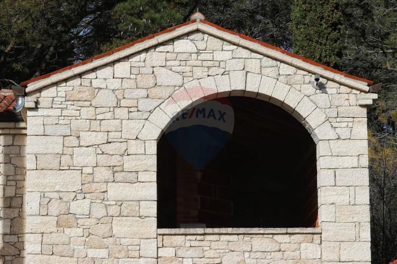 Kuća je stavljena pod krov i obložena kamenom.