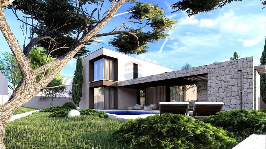 Tijekom izgradnje koriste se vrhunski materijali, a posebna pažnja posvećena je svakom detalju kako bi se osigurala kvaliteta, dugotrajnost i estetika. Dizajn kuće odiše modernim stilom s mediteranskim elementima, pružajući sklad s prirodnim okruženjem.